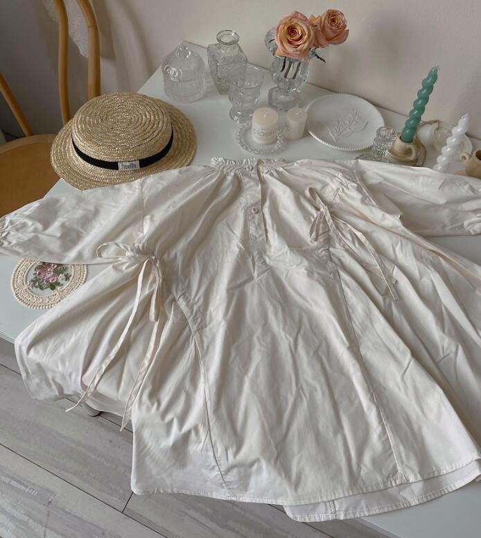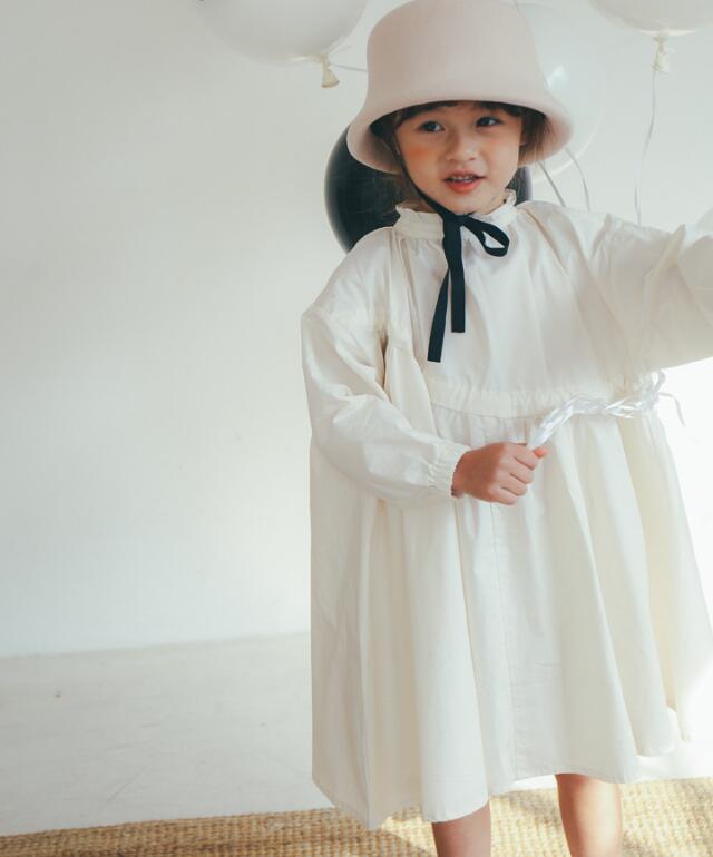 襟元の黒いリボンがアクセントとなり、清楚で可愛らしい印象を演出します。