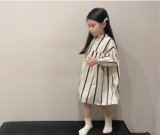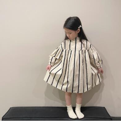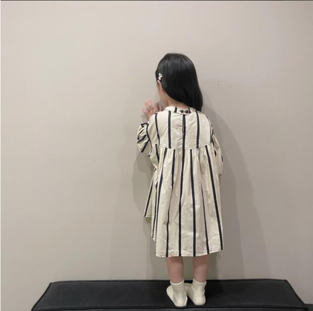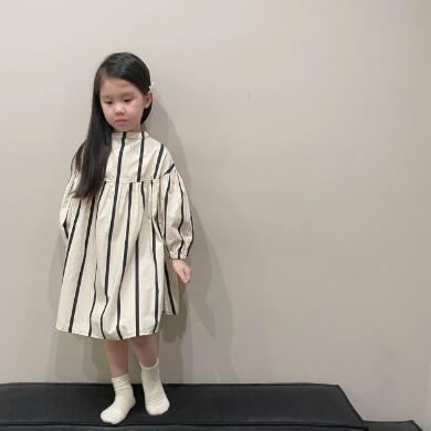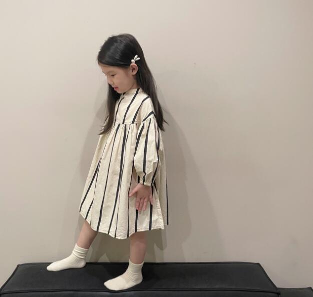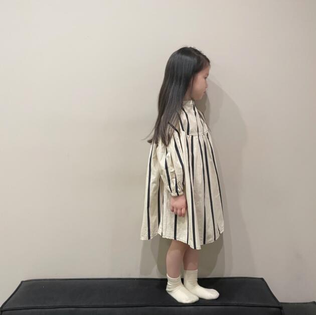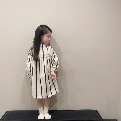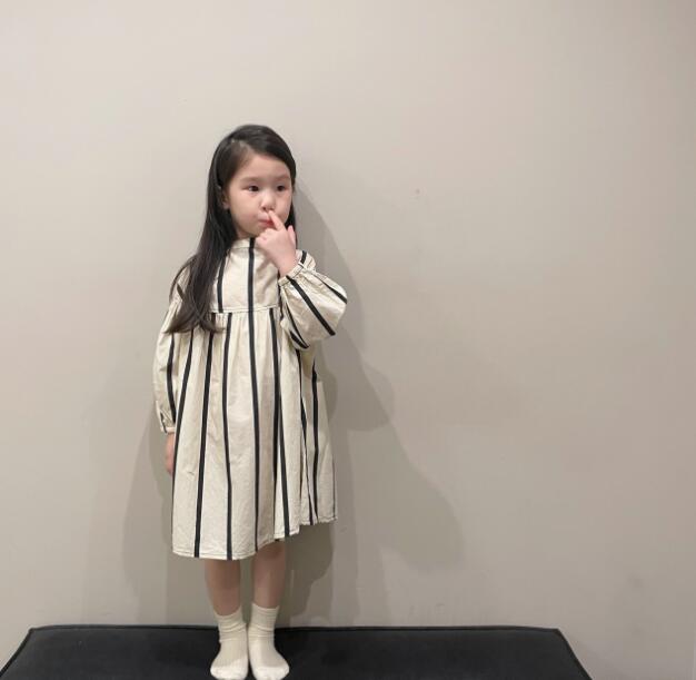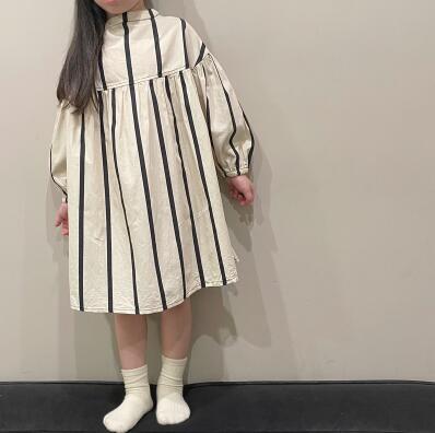 上品な縦縞模様が美しいキッズ用ロングワンピースです。