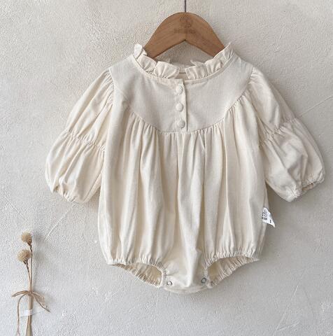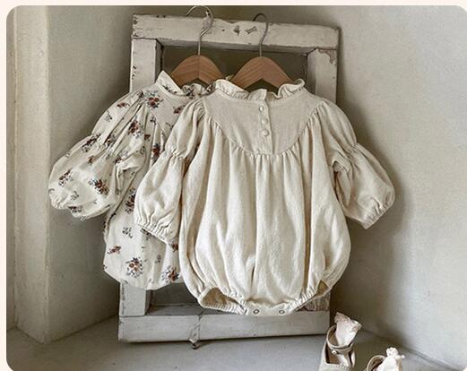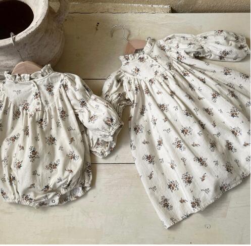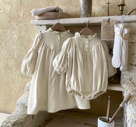 ロングワンピース風のゆったりとした着心地と、動きやすいロンパースの2点セット。