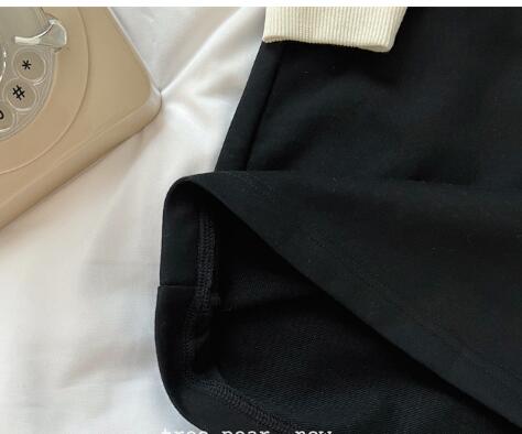 黒地に白い襟がアクセントの上品なデザインで、カジュアルからお出かけまで幅広く着回せます。