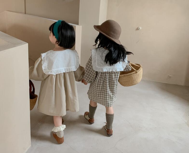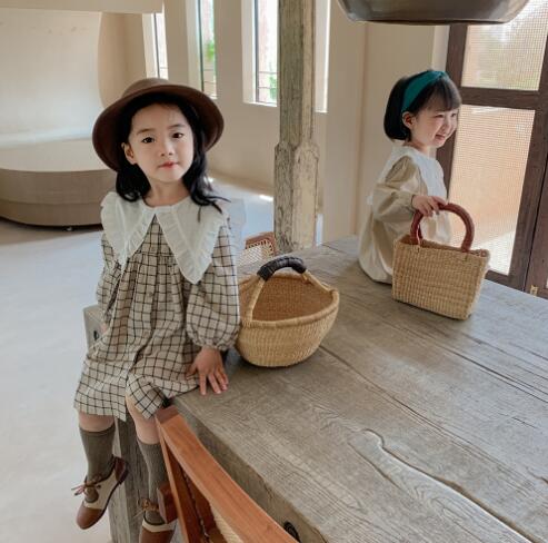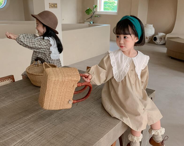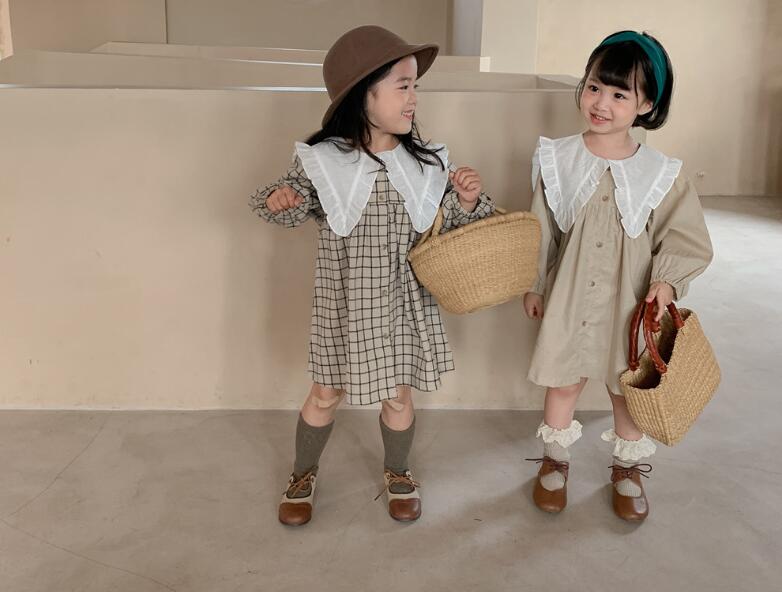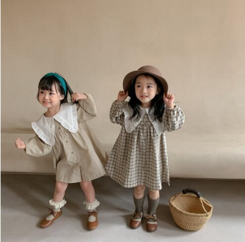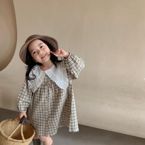 可愛らしい丸襟がポイントのキッズ向けロングワンピースです。 ベージュとチェック柄の2色をご用意しており、どちらも上品で優しい印象を演出します。 80から130センチまでサイズ展開豊富で、お子様の成長に合わせてお選びいただけます。