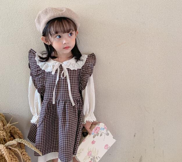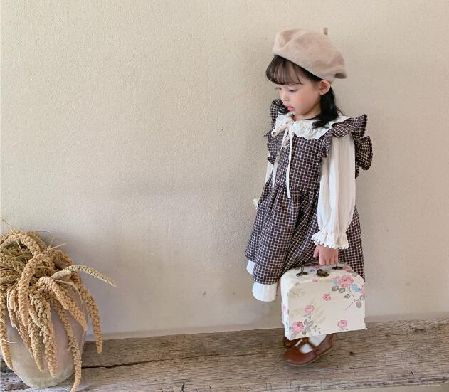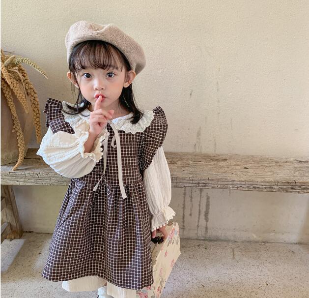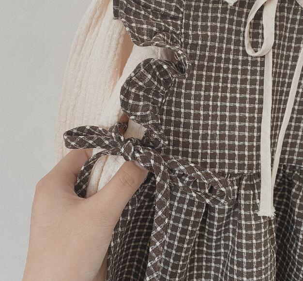 春らしいチェック柄が可愛いキッズ向けロングワンピースの二点組み合わせです。