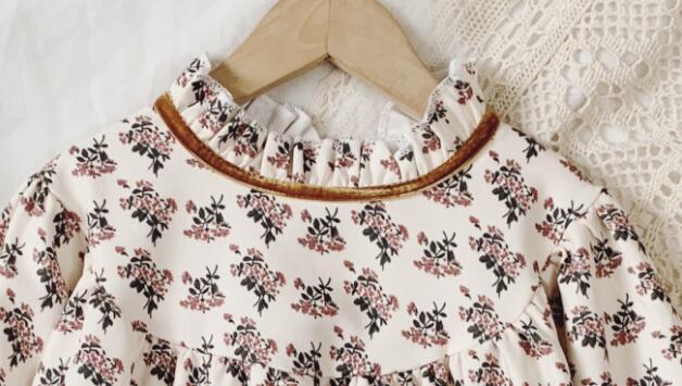 可愛らしい小花柄が全体に散りばめられたキッズ用ロングワンピースです。