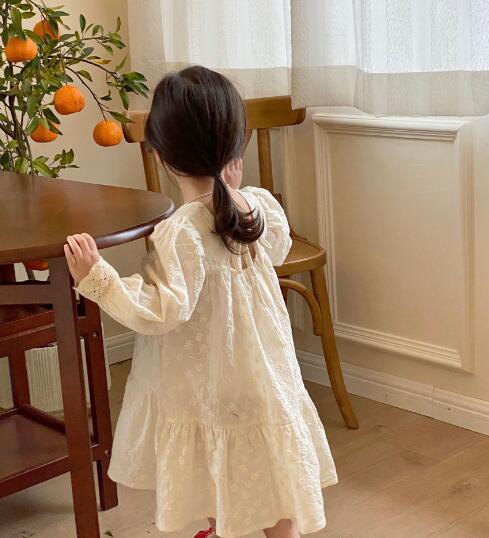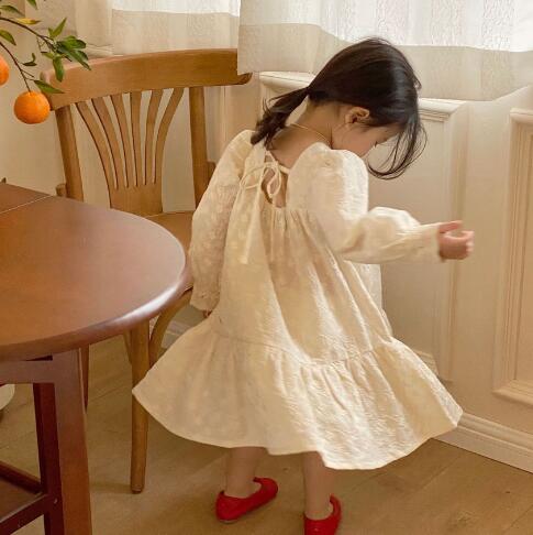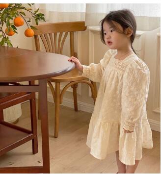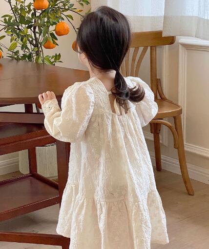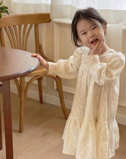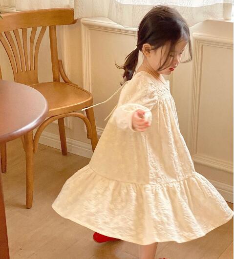上品な韓国風デザインのキッズ用ロングワンピース。