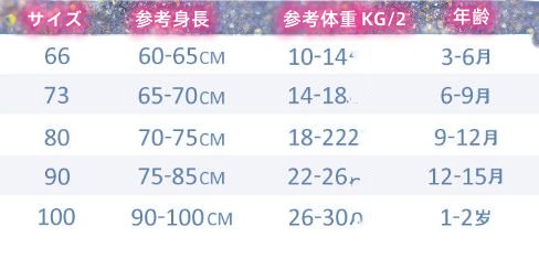 サイズは66から100まで対応しており、成長に合わせてお選びいただけます。