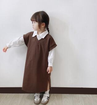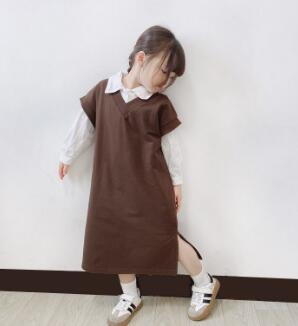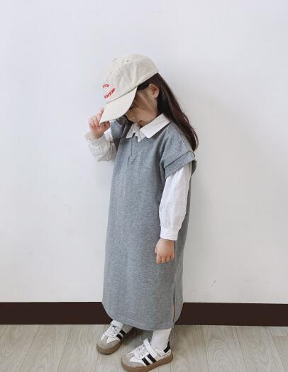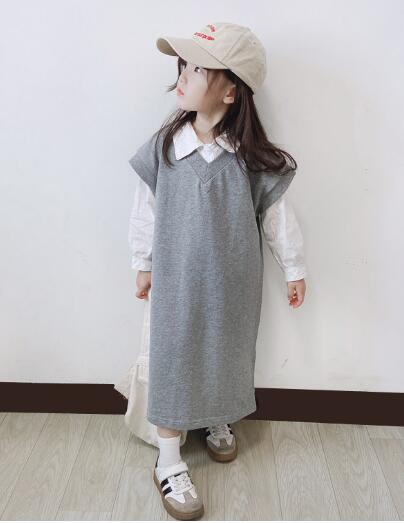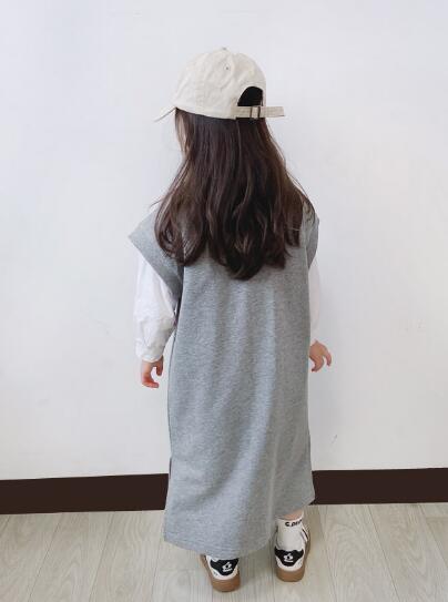 キッズ向けの韓国風デザインが可愛いロングワンピースです。