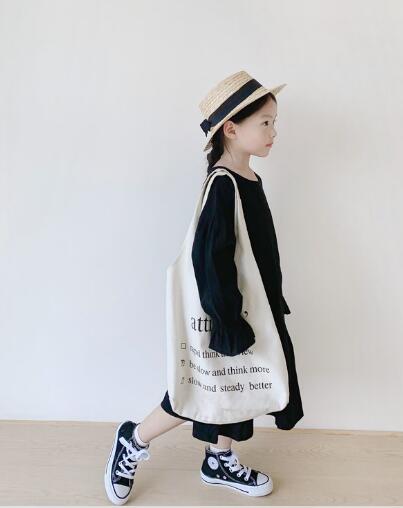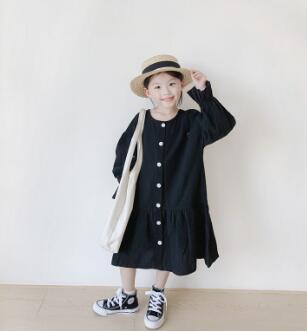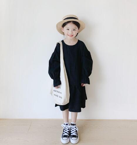 おしゃれな韓国風キッズ服のロングワンピースです。