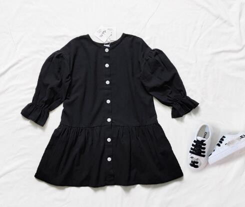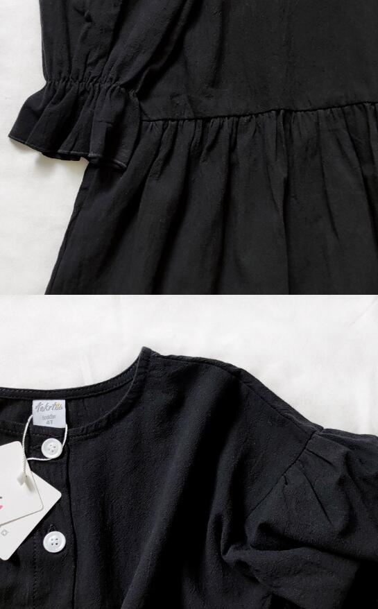 黒色の長袖で前ボタンデザインが可愛らしく、カジュアルからお出かけまで幅広く活躍します。