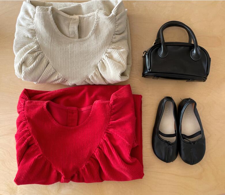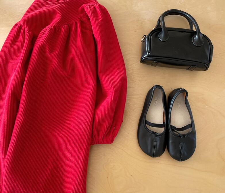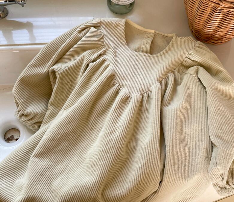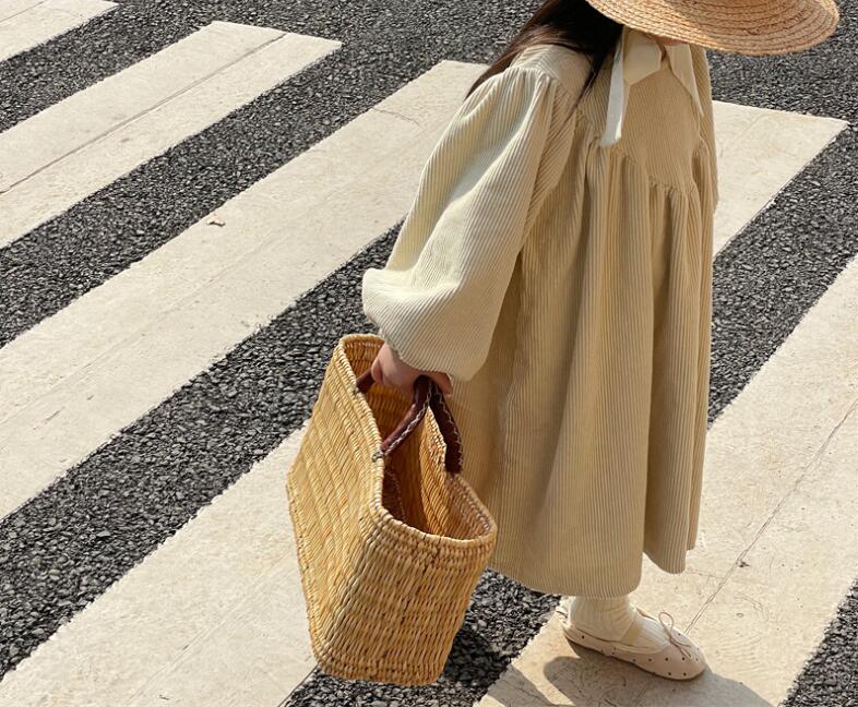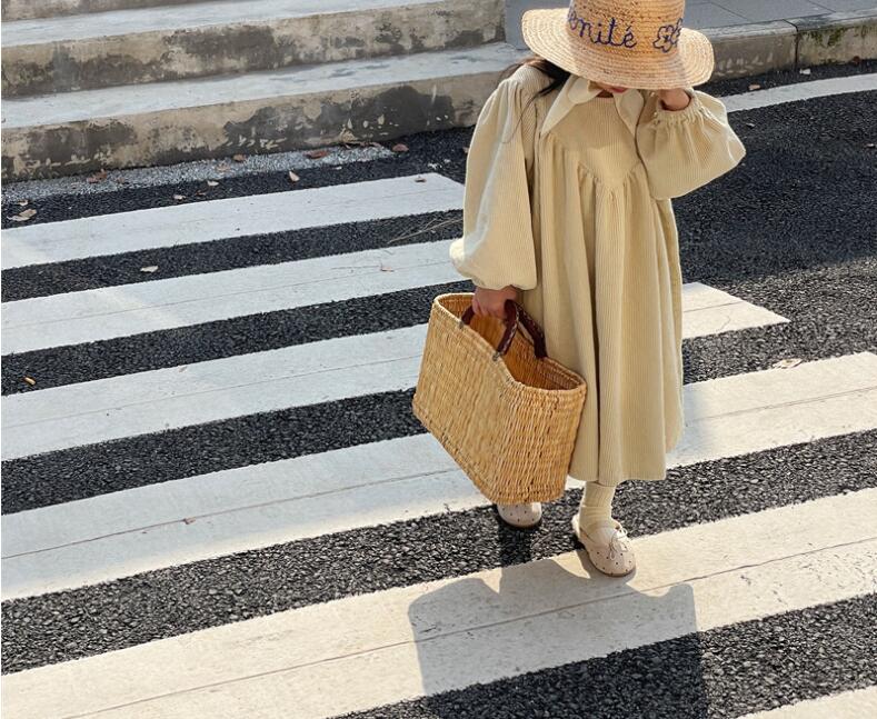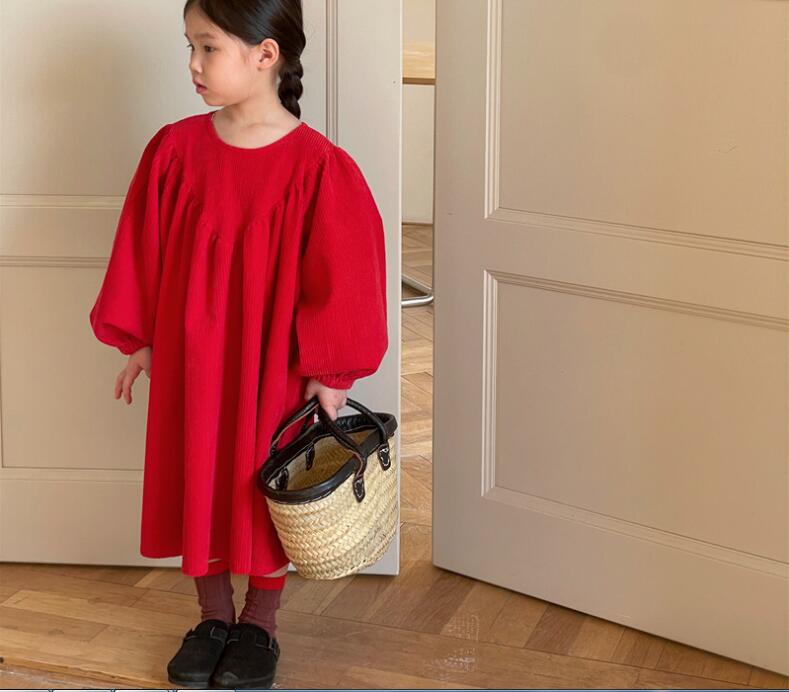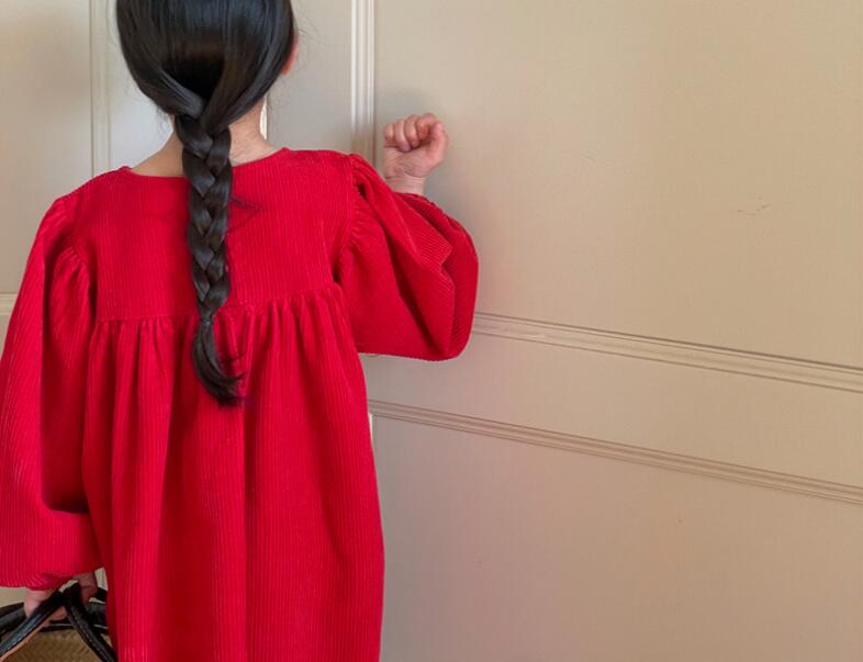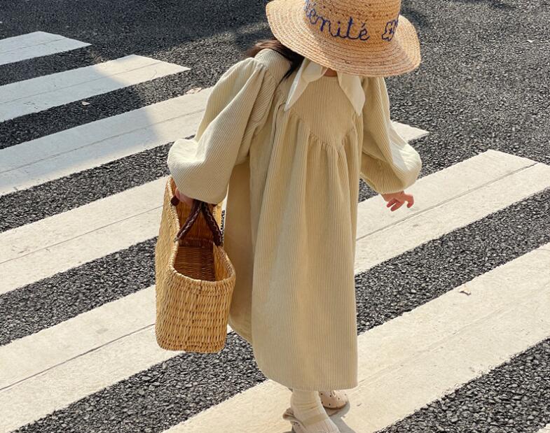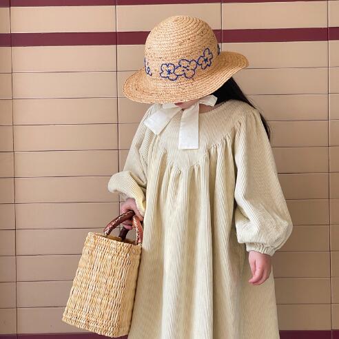 韓国風デザインが可愛いキッズ用コーデュロイロングワンピースです。