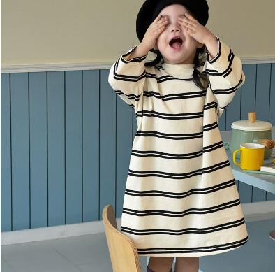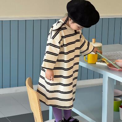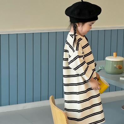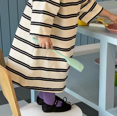 おしゃれなボーダー柄が可愛いキッズ用ロングワンピースです。