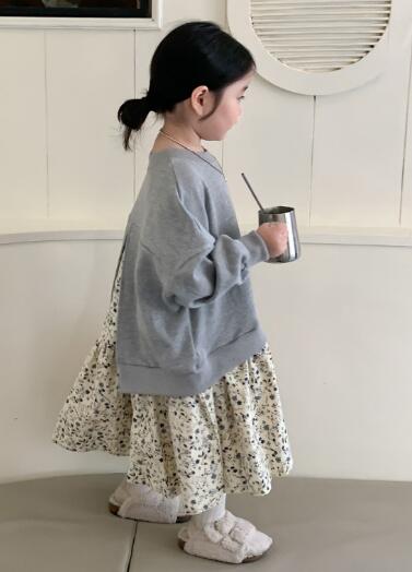 韓国風デザインの可愛い小花柄ロングワンピースとパーカーのセットアップです。 キッズの普段着からお出かけまで幅広く活躍する上品なスタイルを演出。 ゆったりとした着心地で動きやすく、90センチから130センチまで対応しています。
