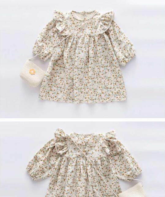 可愛らしい小花柄が散りばめられたキッズ用ロングワンピースです。 長袖デザインで春秋シーズンに最適で、韓国風のおしゃれなシルエットが特徴的です。 女の子らしいふんわりとした着心地で、お出かけや普段使いにもぴったりの一枚です。