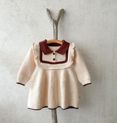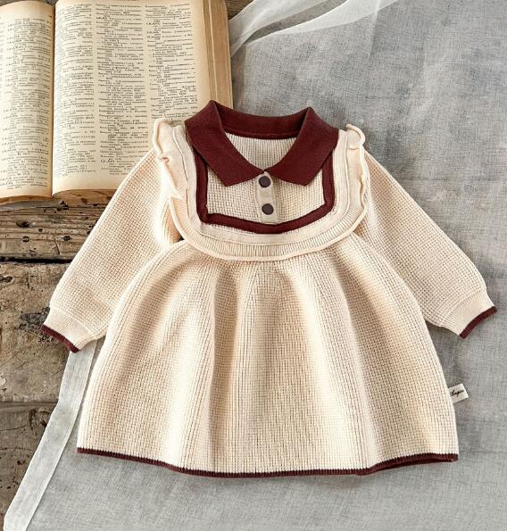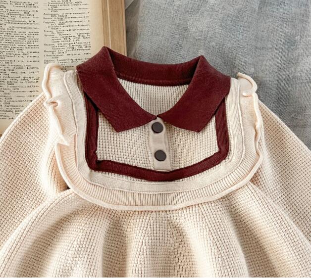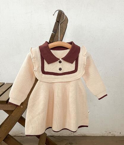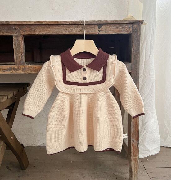 可愛らしい襟付きデザインのキッズ用ニット素材ロングワンピースです。