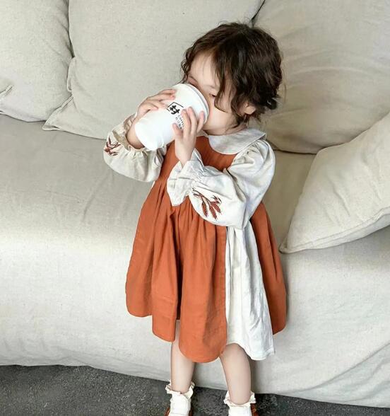 キッズ向けの可愛い重ね着風デザインのロングワンピースです。