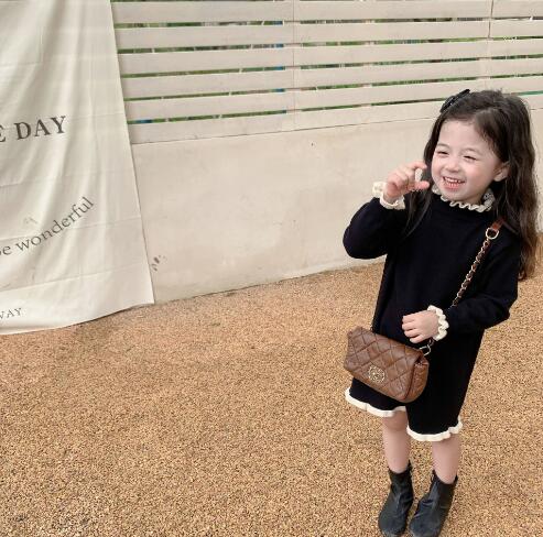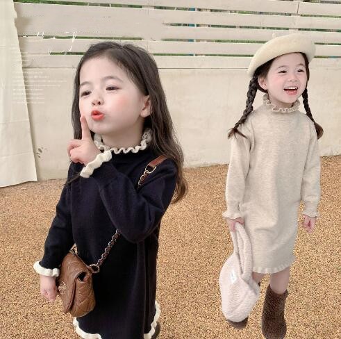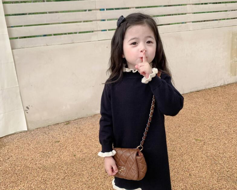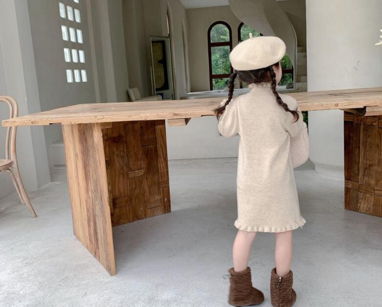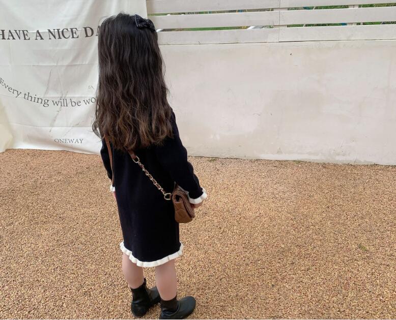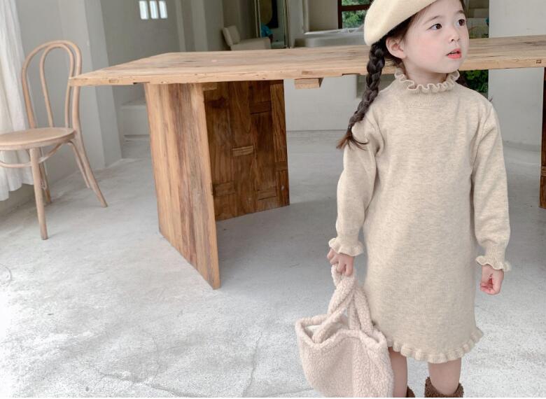 可愛い編み込み襟がポイントのキッズ用ロングワンピースです。