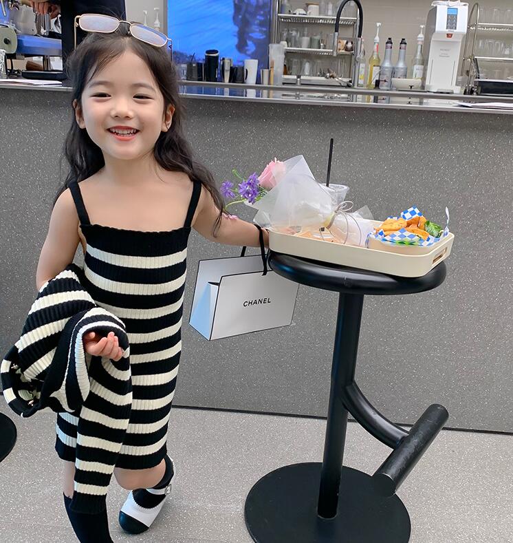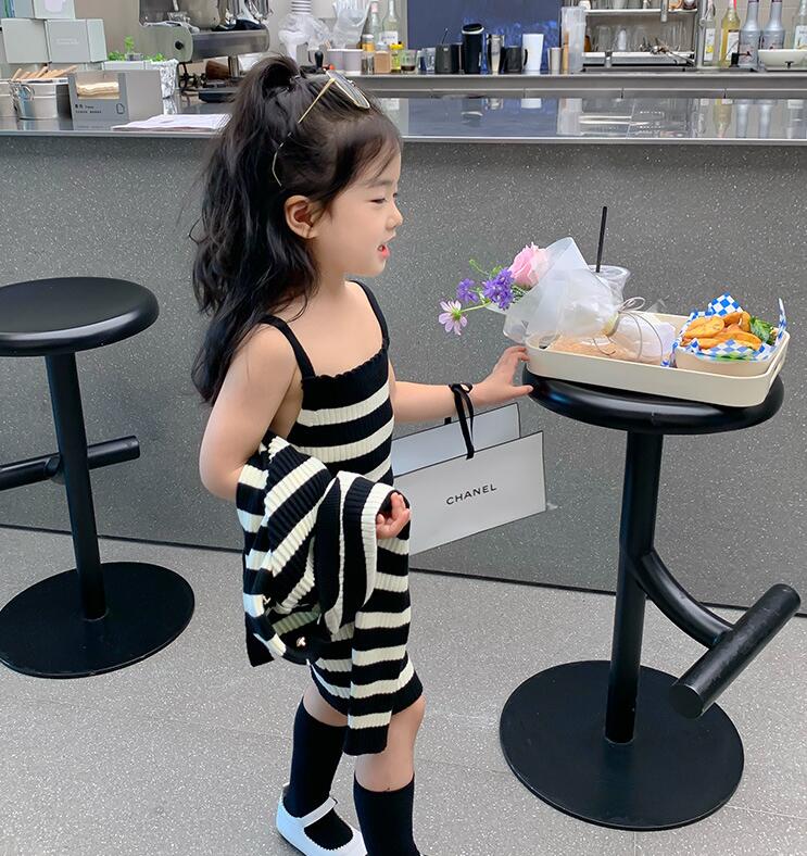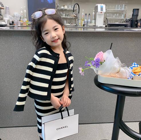 おしゃれなキッズ向けボーダー柄ニットセットです。