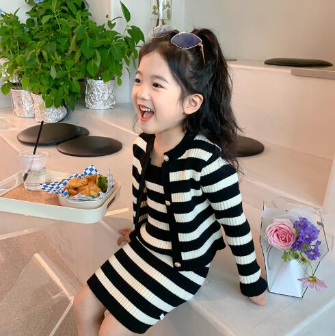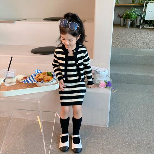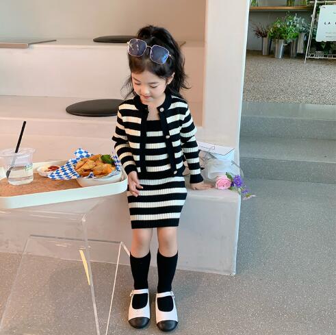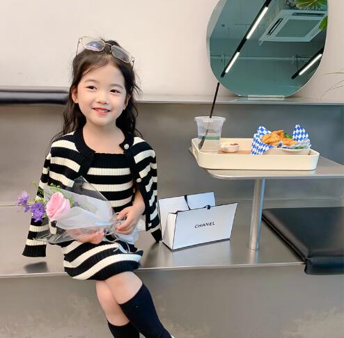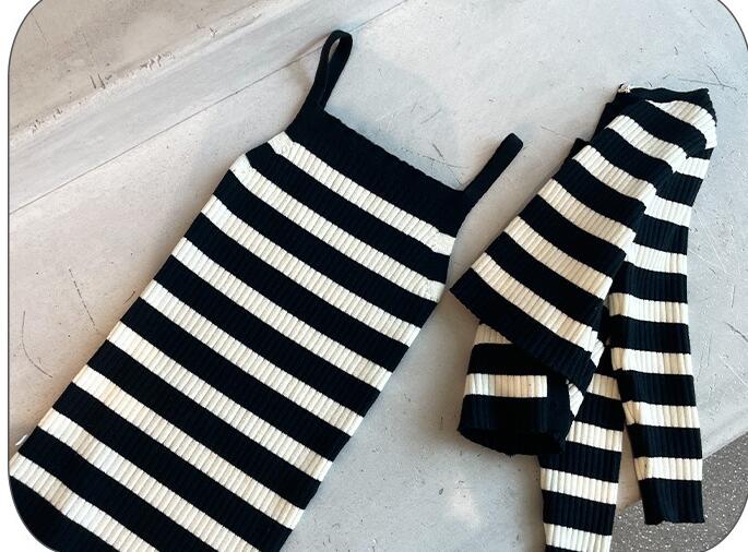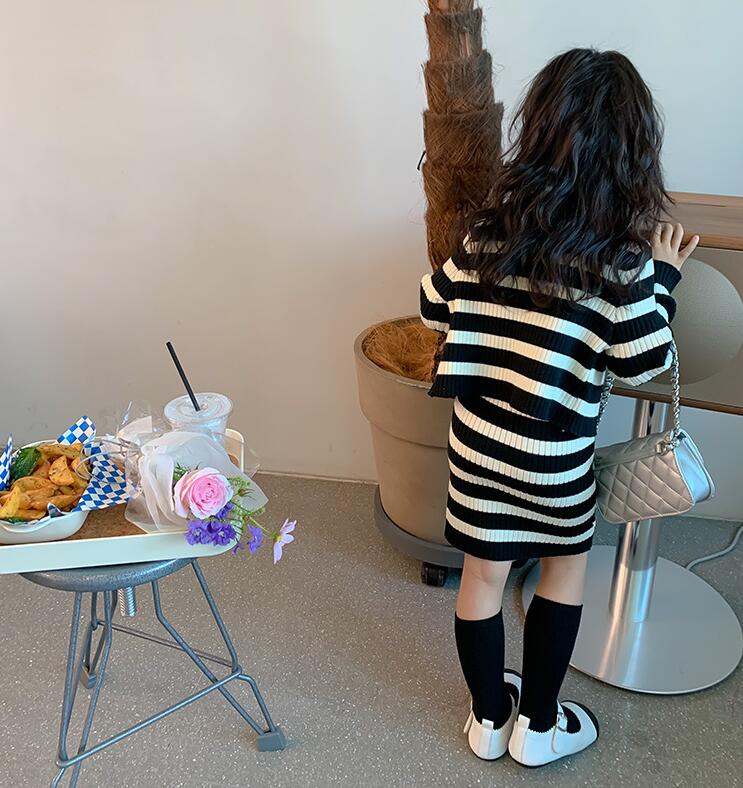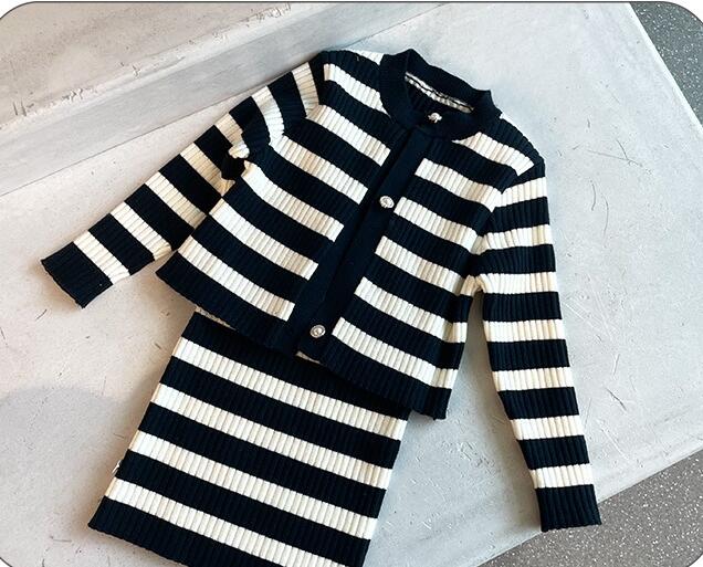 上品な黒と白のストライプ模様が可愛らしく、セーターとロングワンピースの組み合わせで様々なコーディネートが楽しめます。