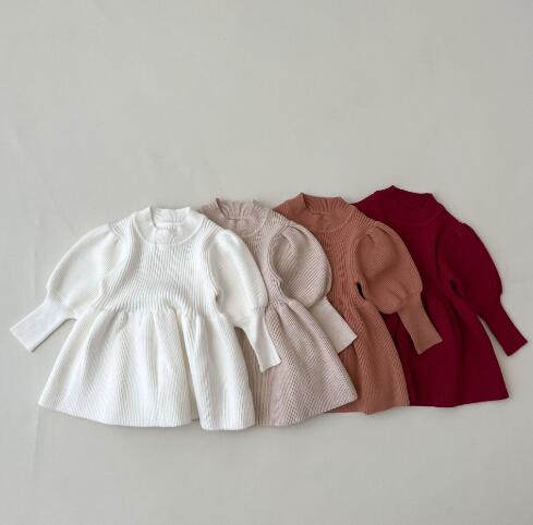 秋冬にぴったりのキッズ用ニット編みロングワンピースです。