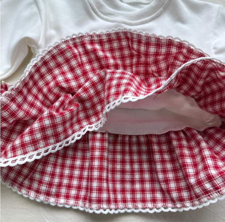 スカート部分も同じチェック柄でレース付きの上品な仕上がり。