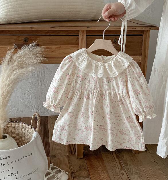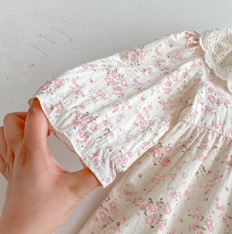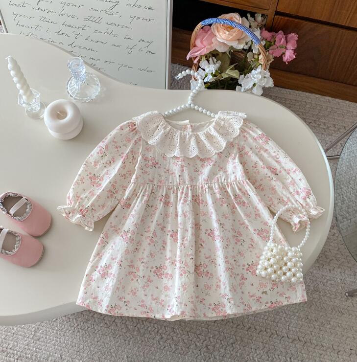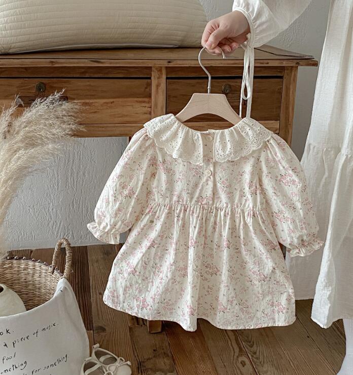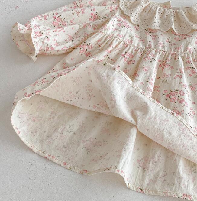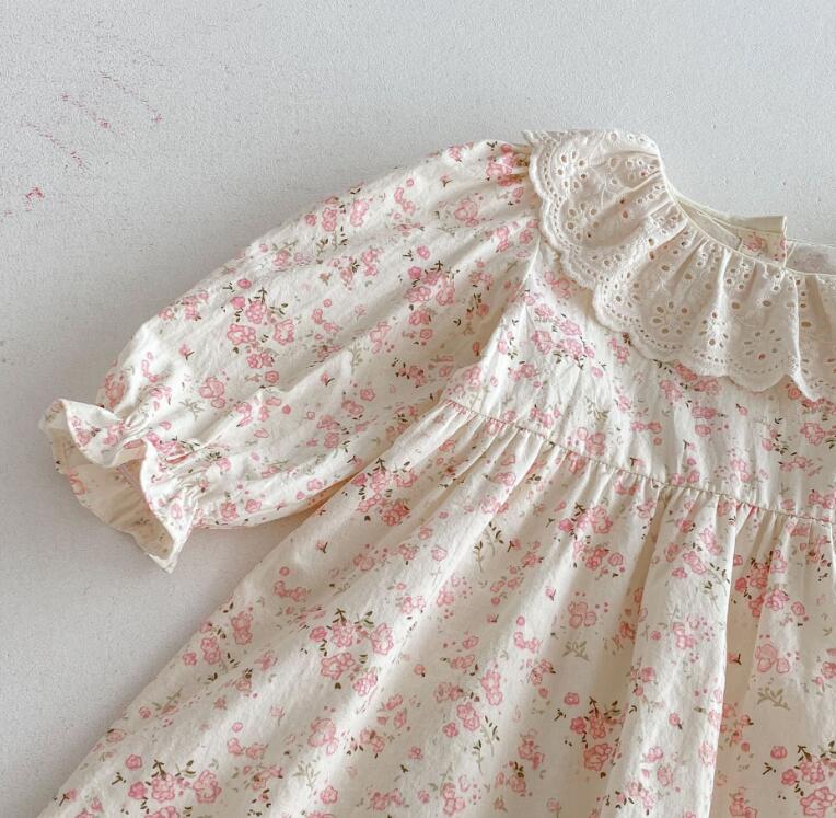 上品なレース襟とパフスリーブが女の子らしさを演出します。