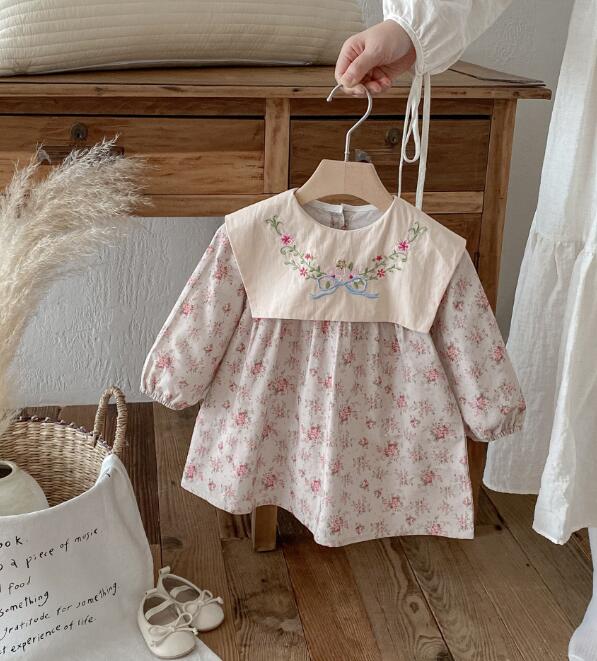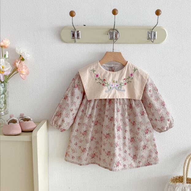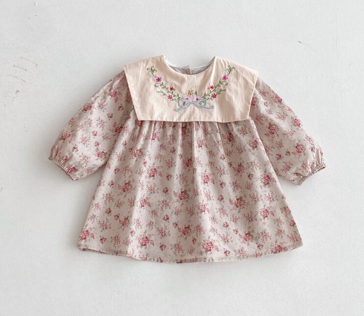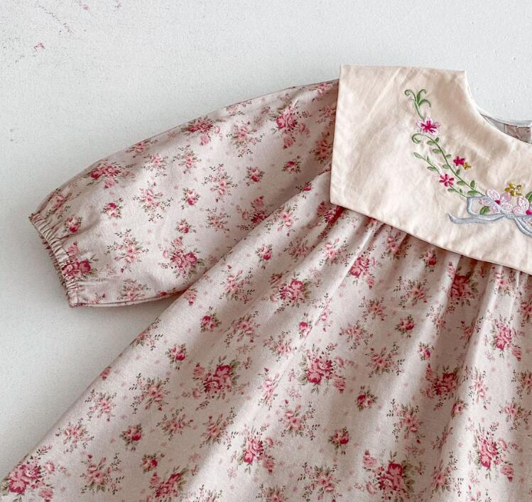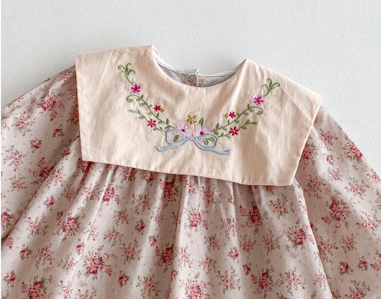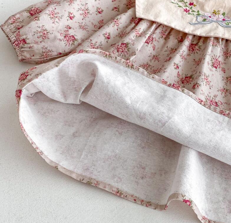 可愛らしい花柄刺繍が施されたキッズ用ロングワンピースです。