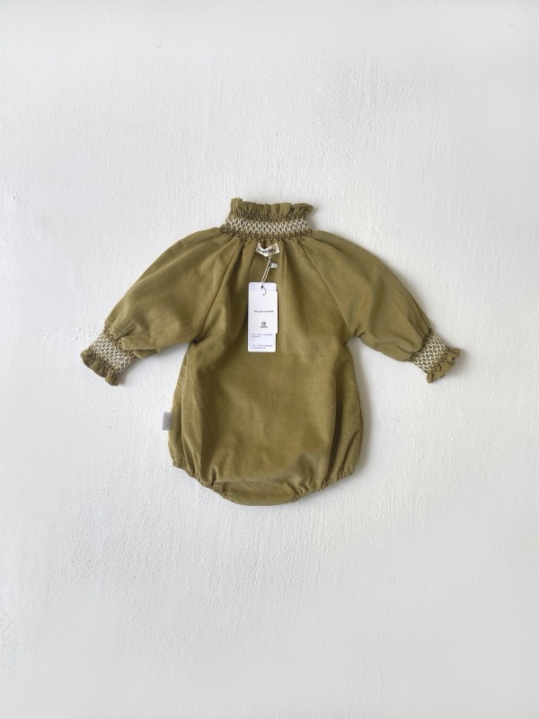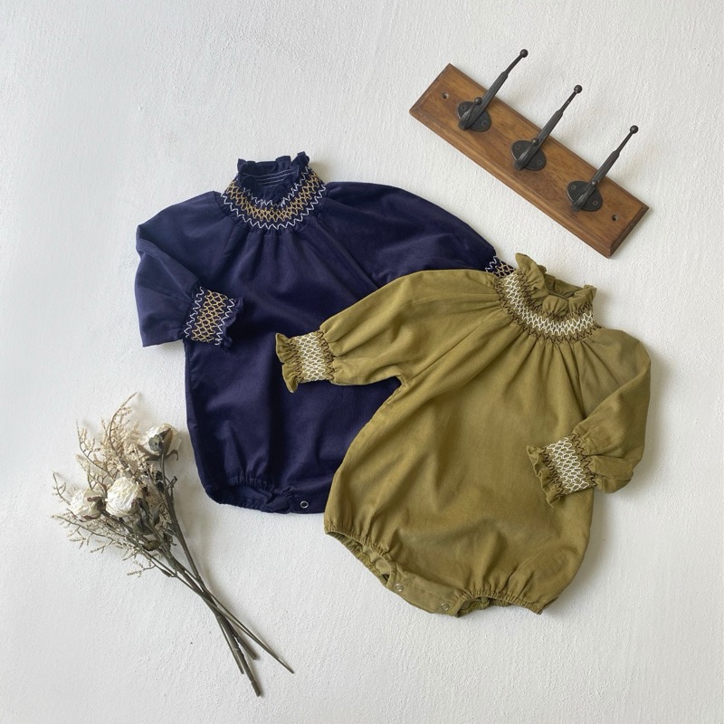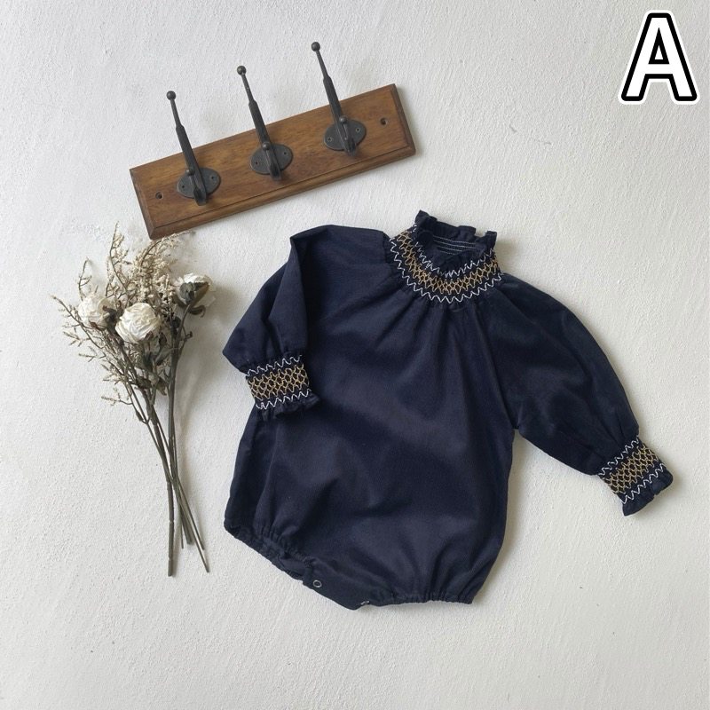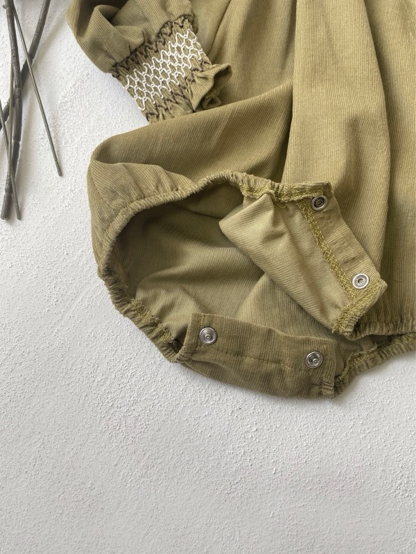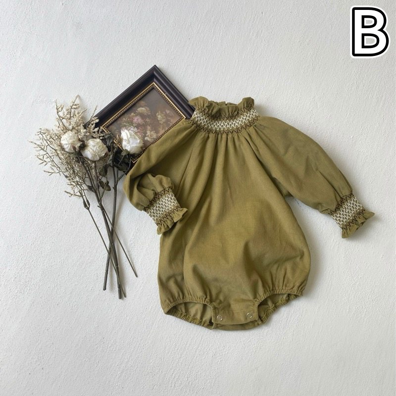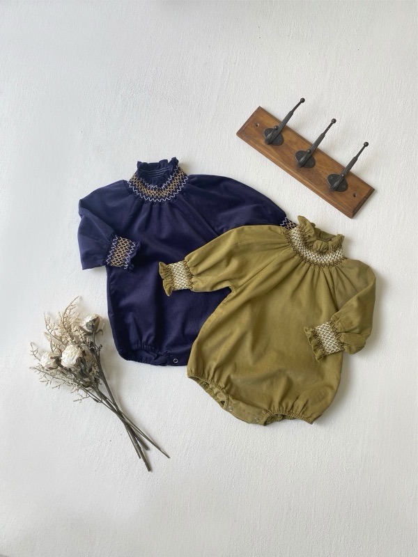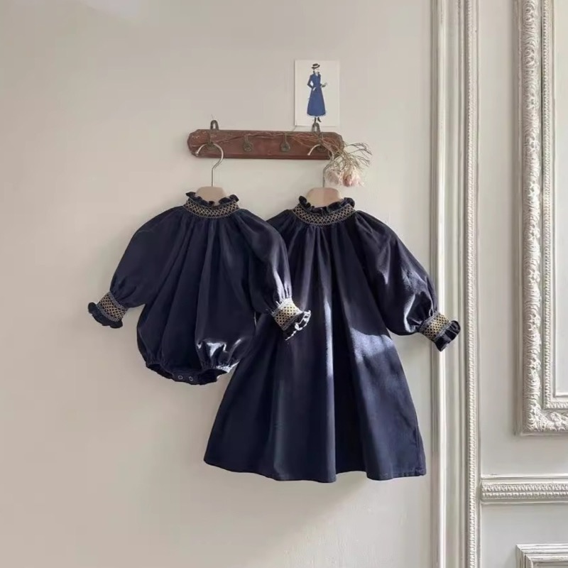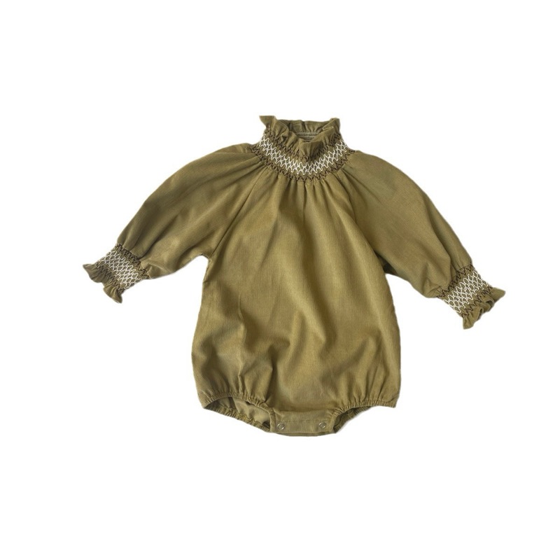刺繍が美しい襟元とパフスリーブが特徴的で、ロングワンピースのような上品なデザインに仕上げました。