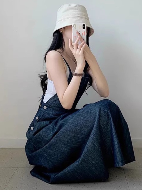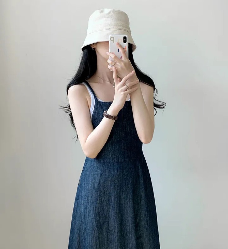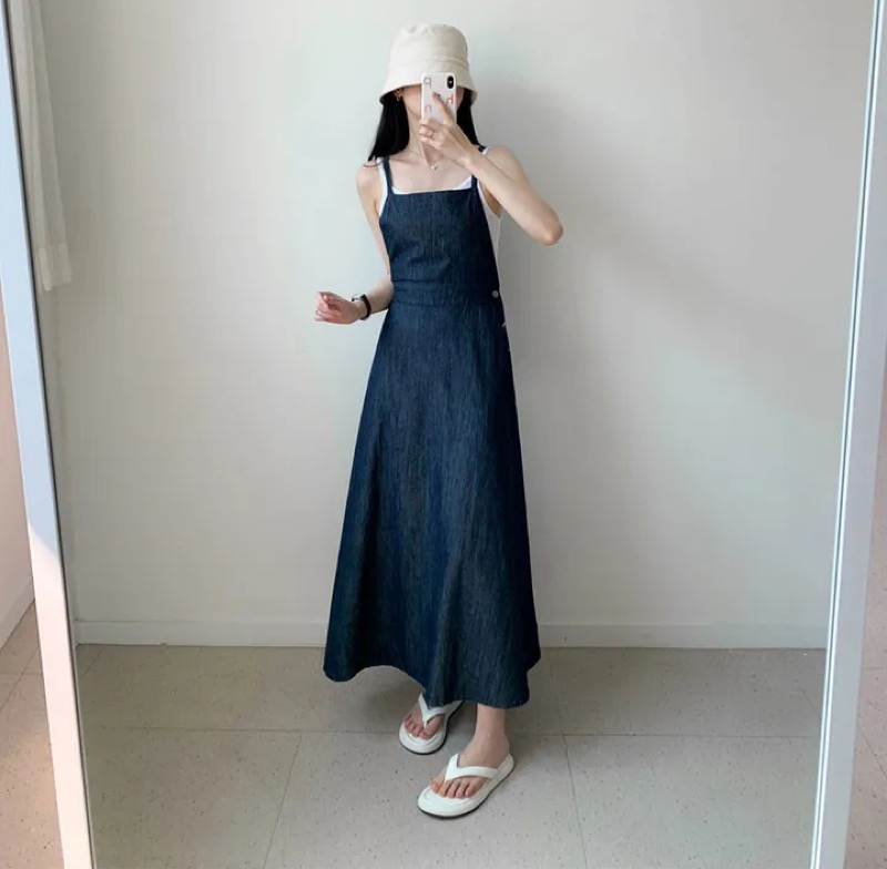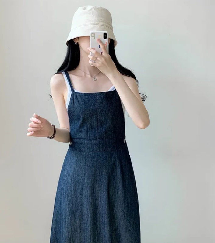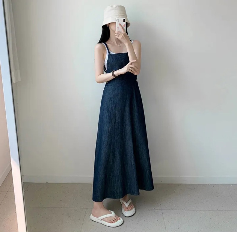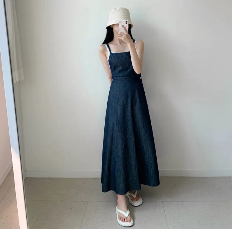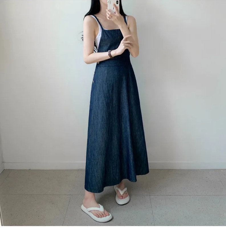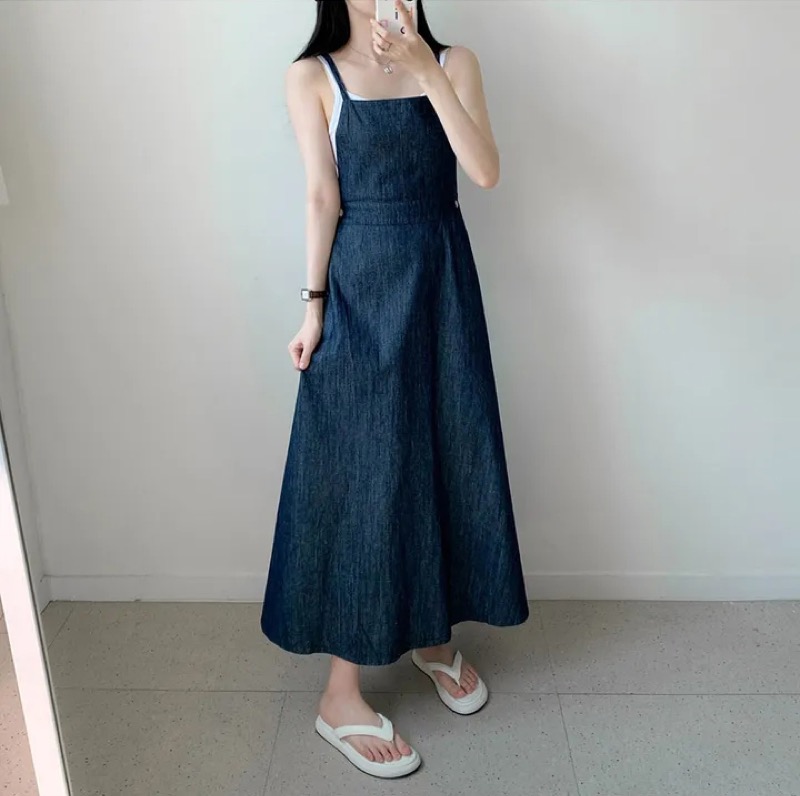 この商品は国内倉庫から発送される、魅力的なデニム素材のキャミソールワンピースです。