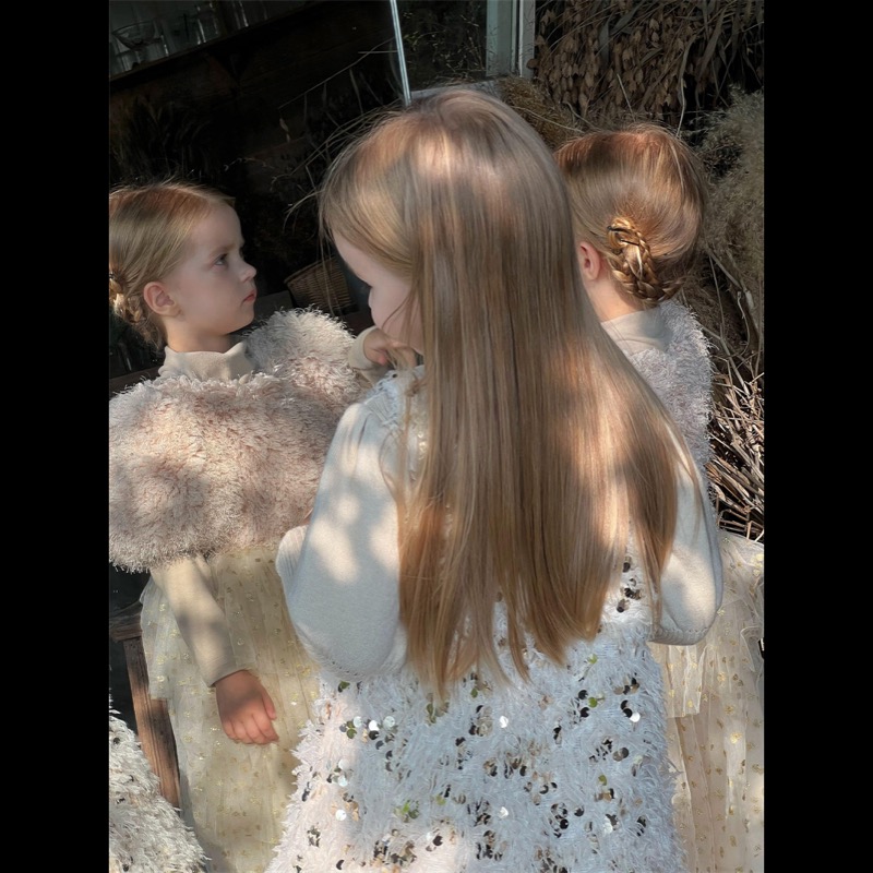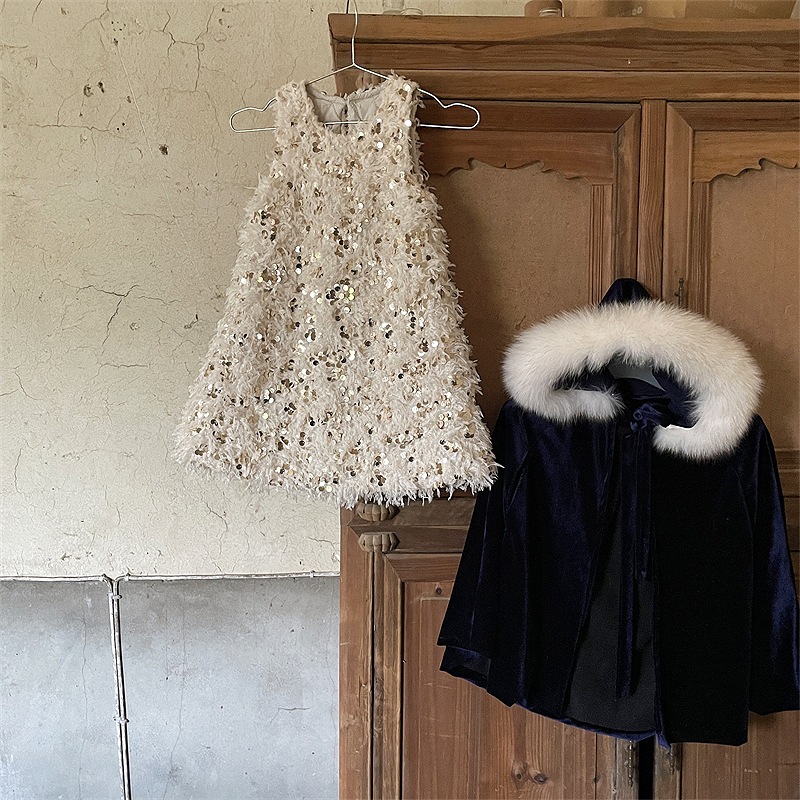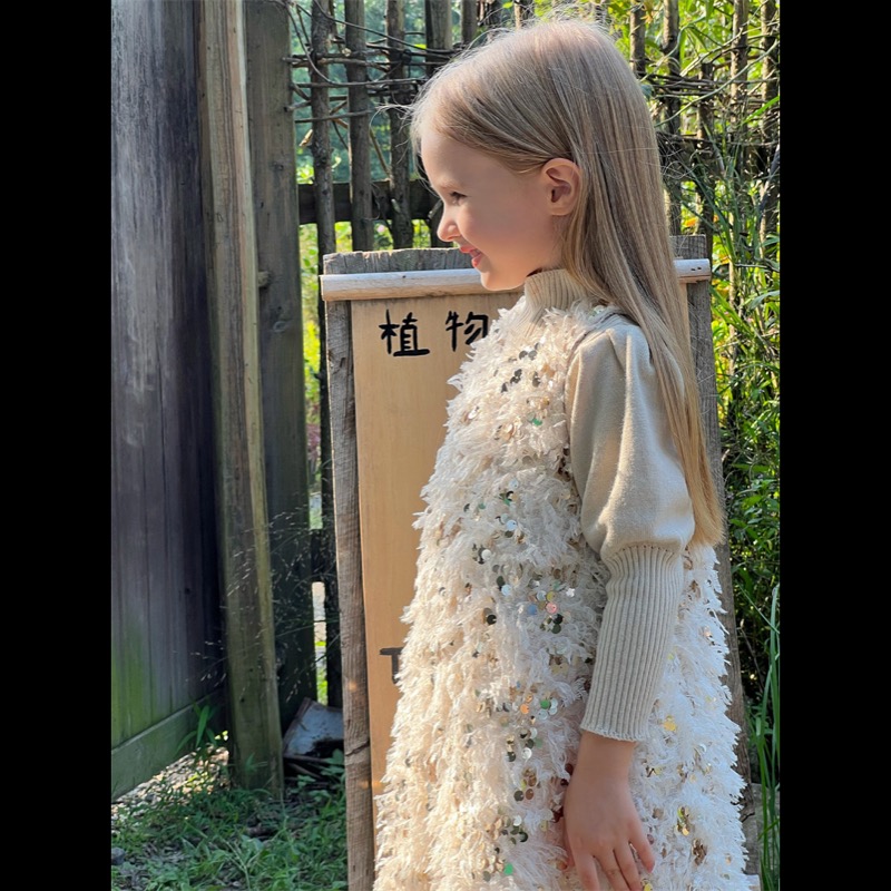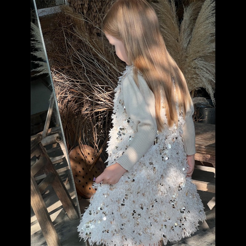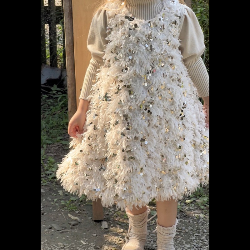 キッズ用の上品で華やかな羽根飾りロングワンピースです。