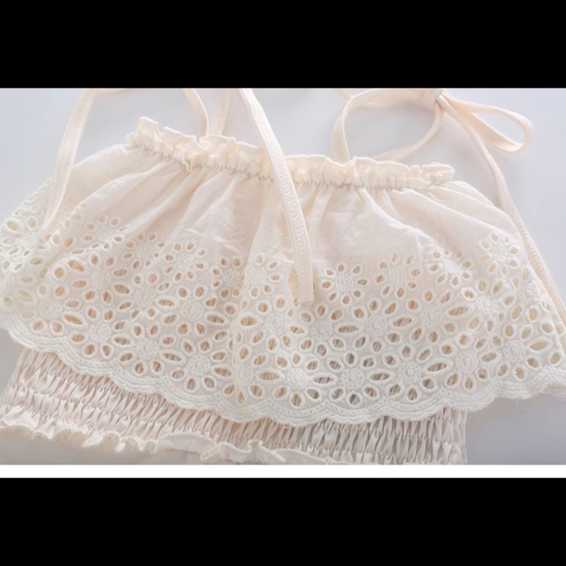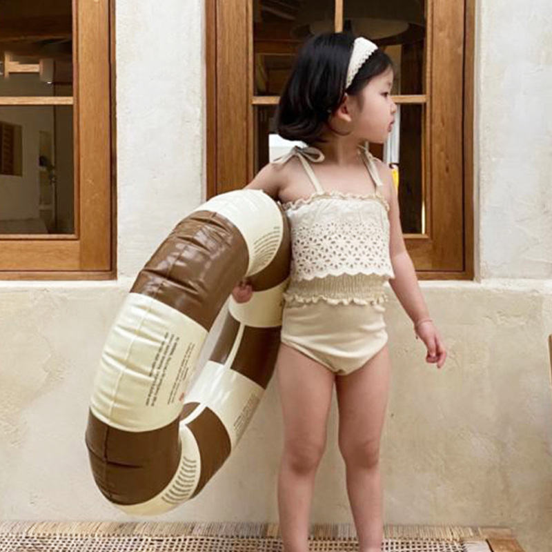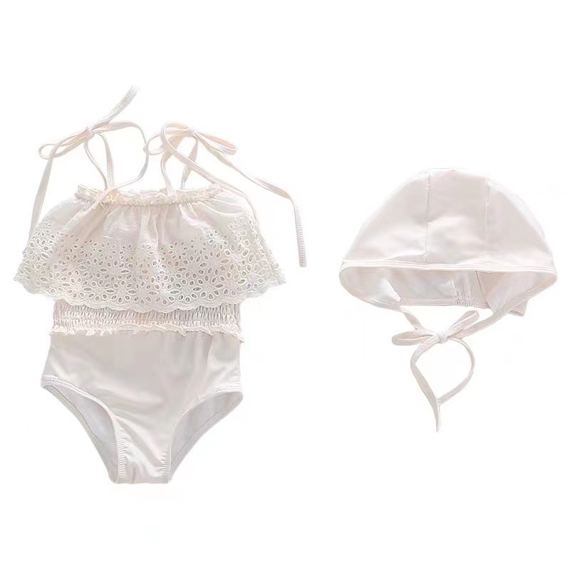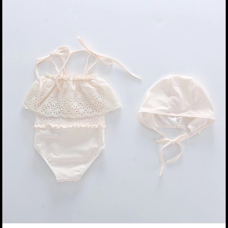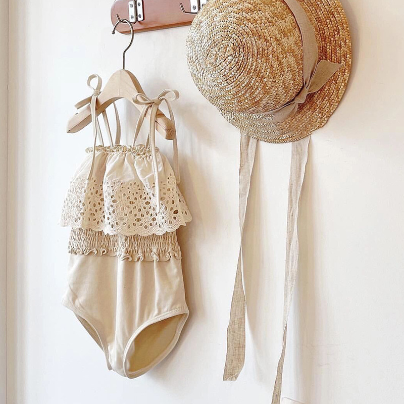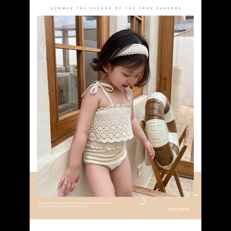 この商品は国内倉庫から発送される、キッズ向けの魅力的なレースデザイン水着です。
