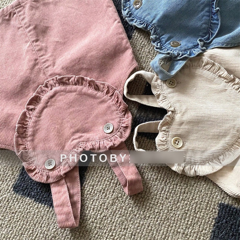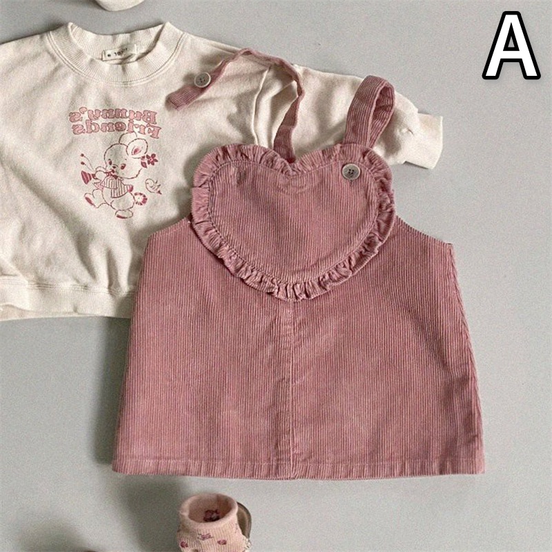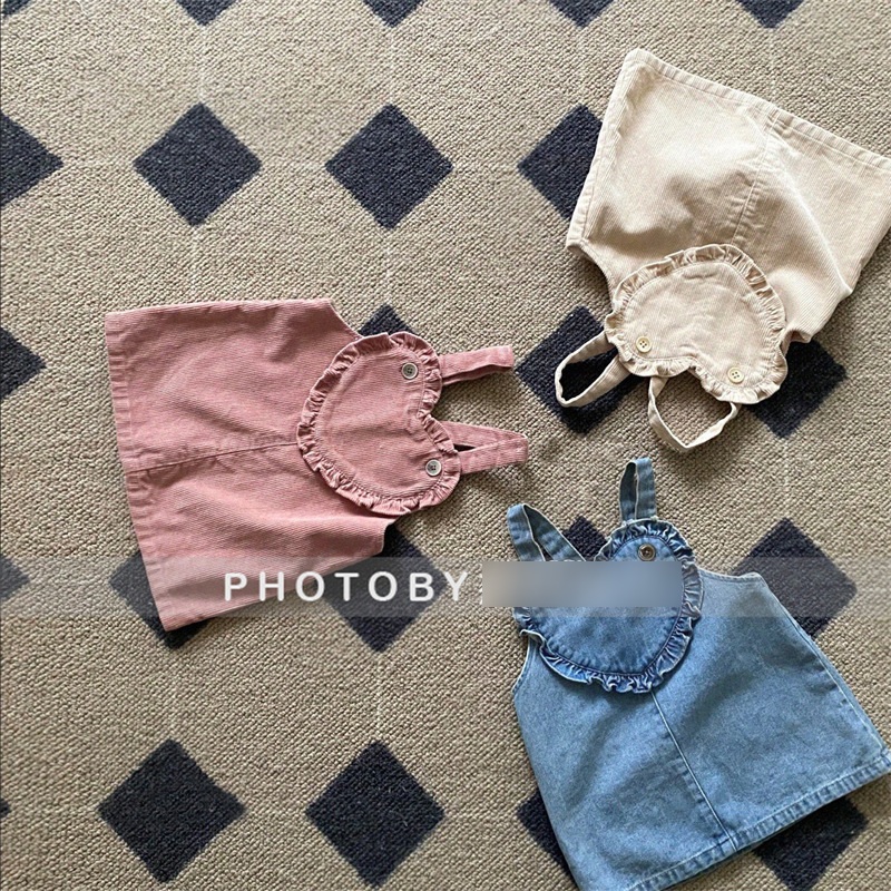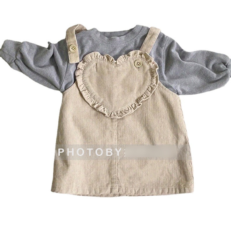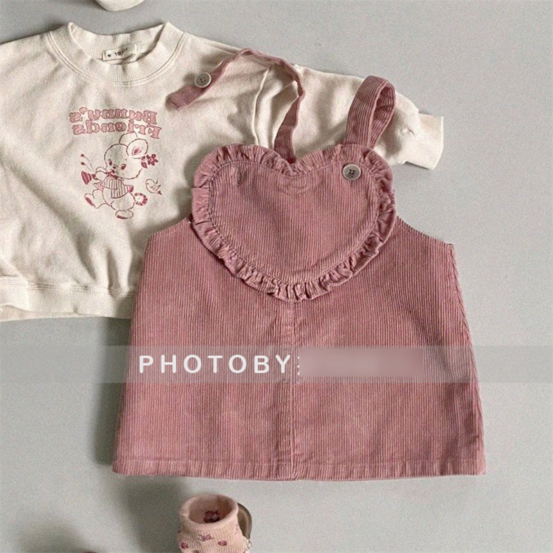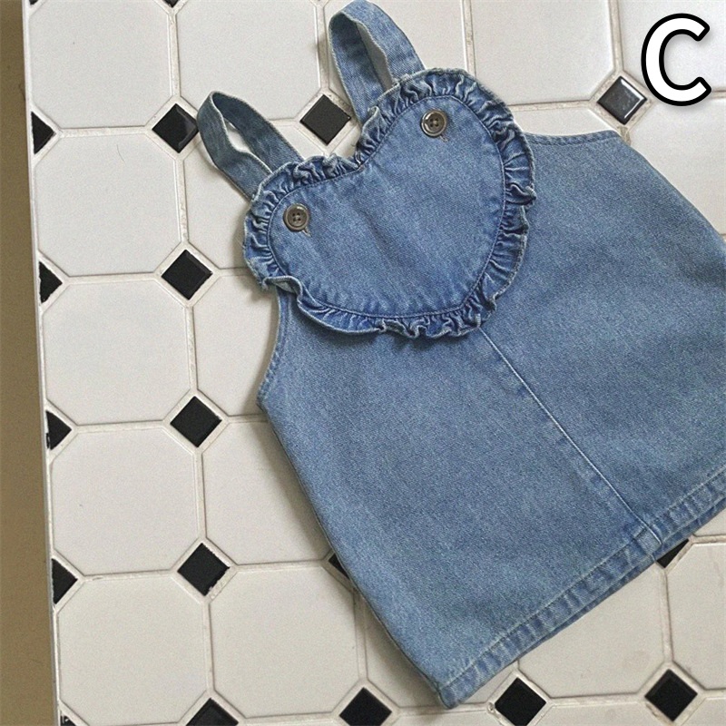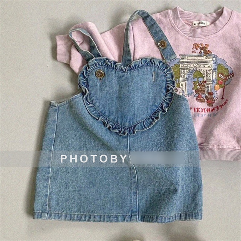 可愛いハート型胸当て付きのキッズ用デニムサロペットです。