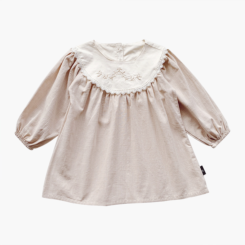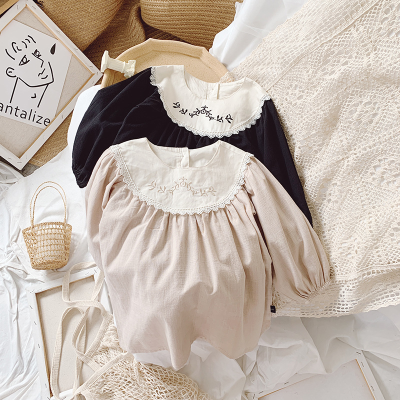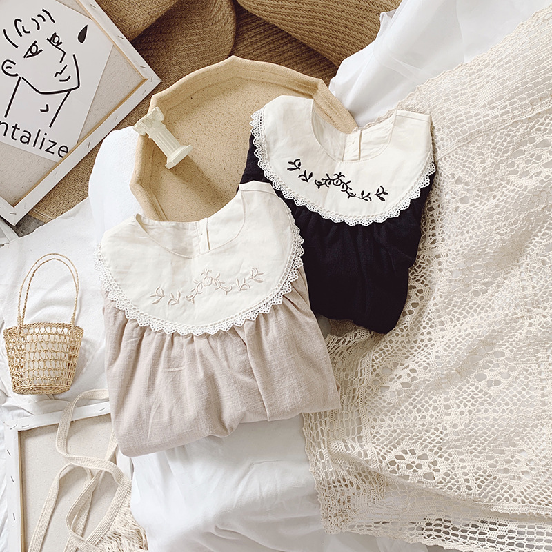 上品な刺繍と繊細なレース襟が特徴的で、お子様を可愛らしいプリンセスに演出します。