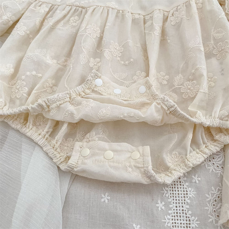 素材は肌に優しい綿100%で安心。ロンパースとロングワンピースから選べる2タイプ。