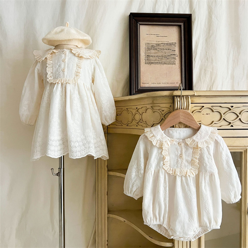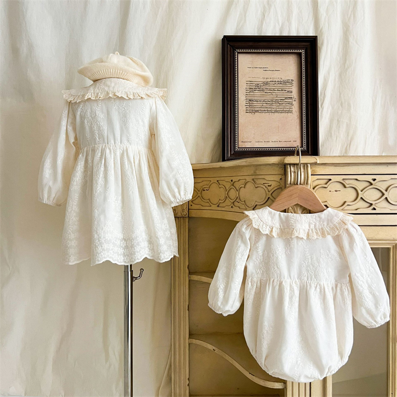 上品なレース装飾が美しいキッズ用姉妹服セットです。