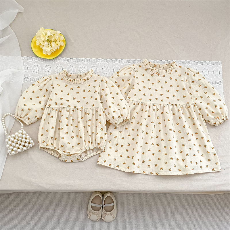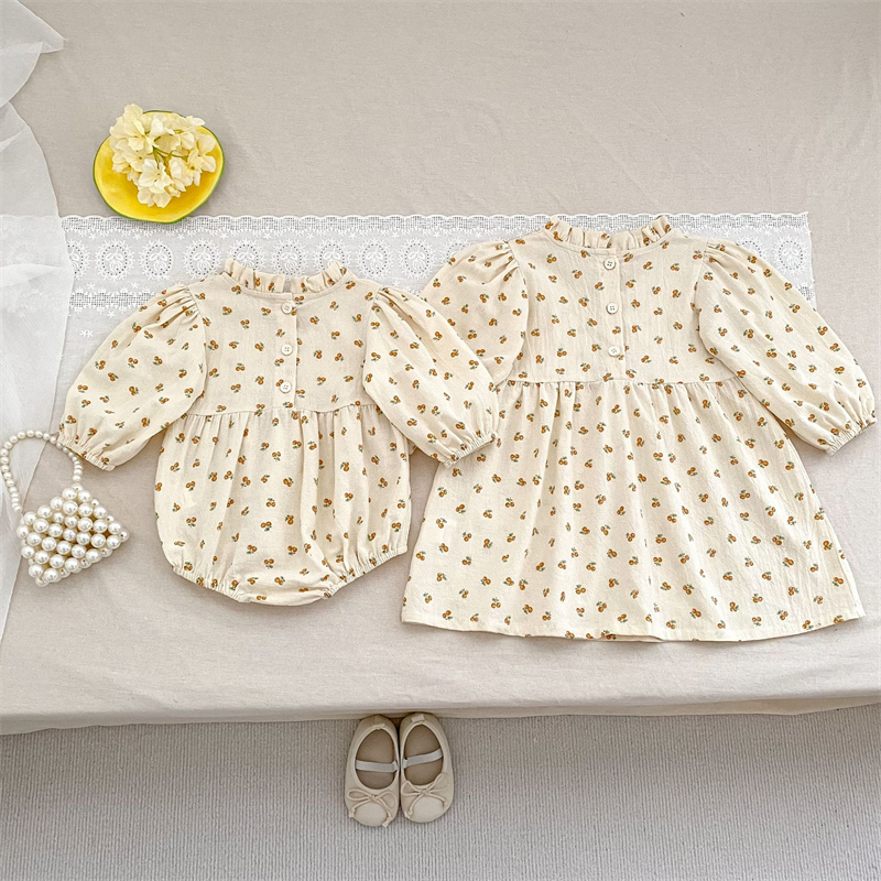 可愛い花柄が魅力的なキッズ用姉妹服の2点セット。