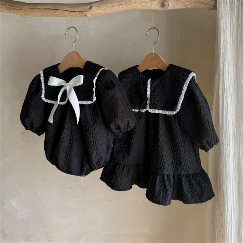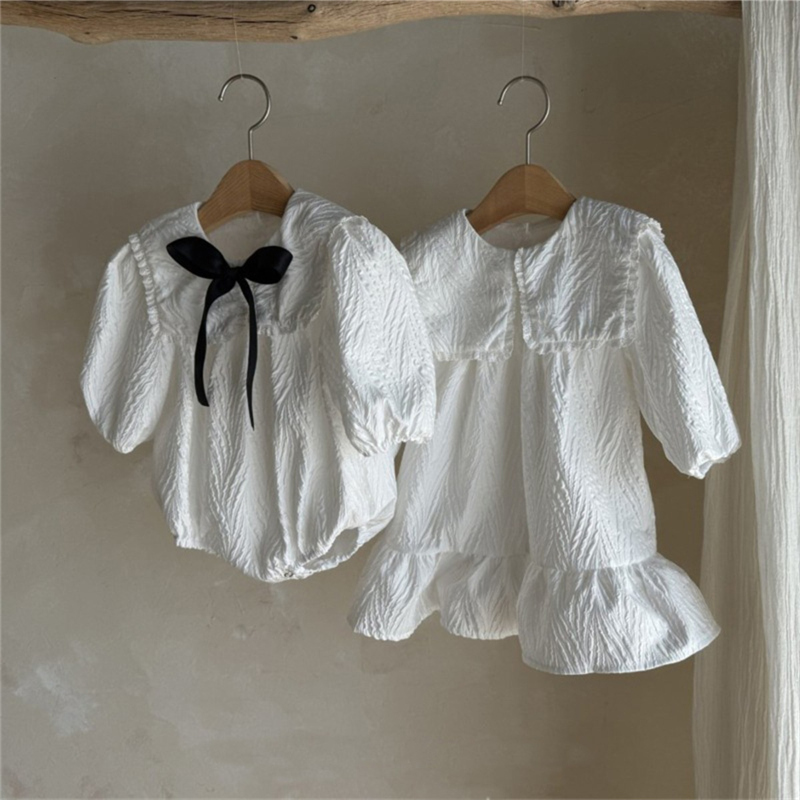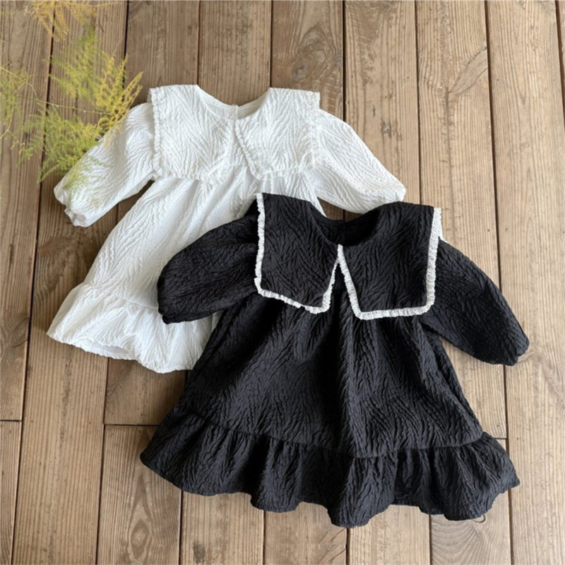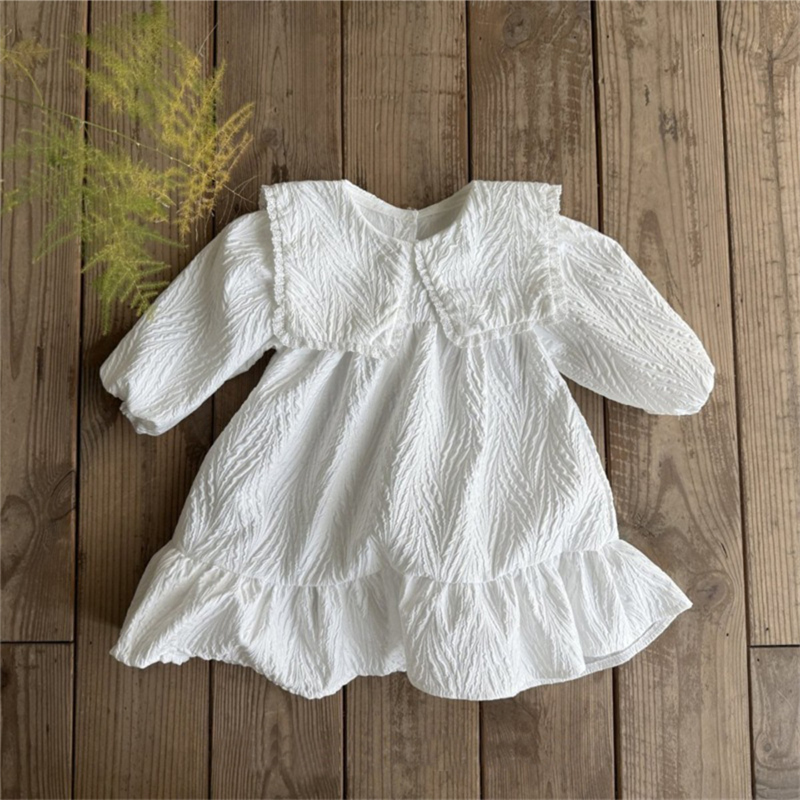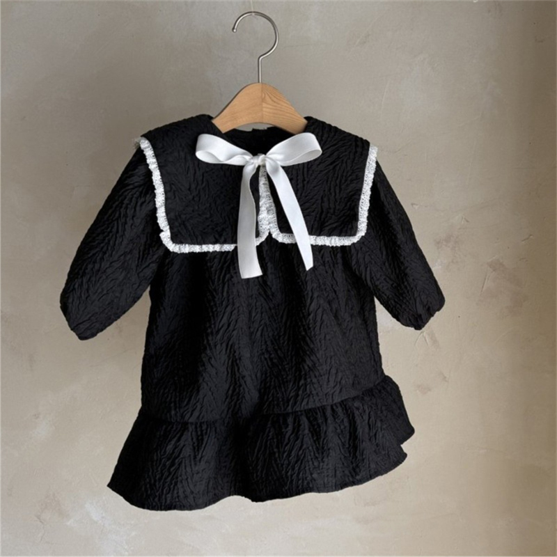 可愛らしい大きな襟とリボンがポイントのキッズ用ロングワンピースです。