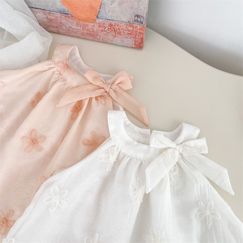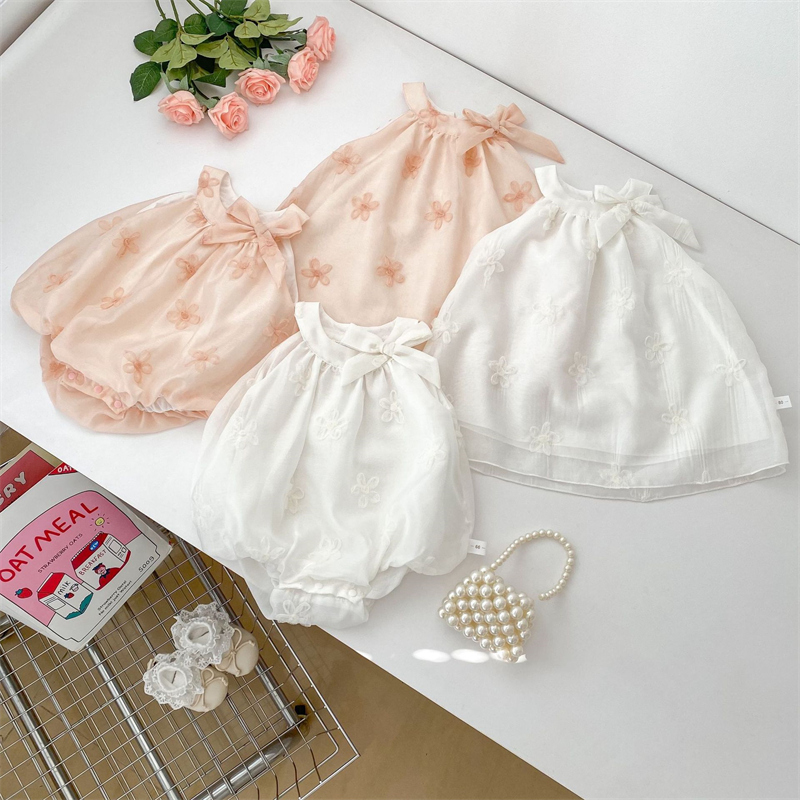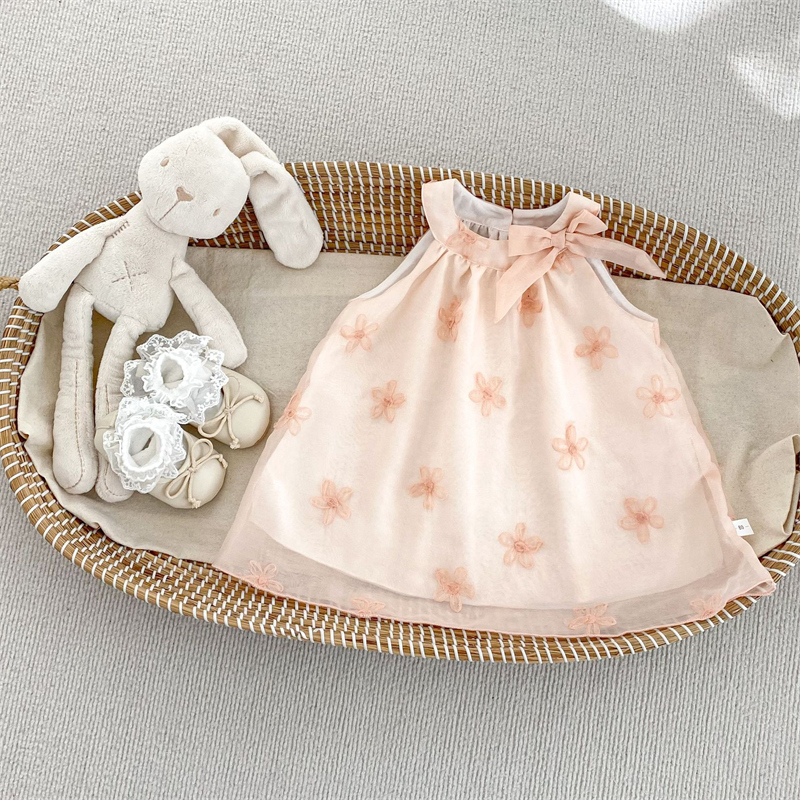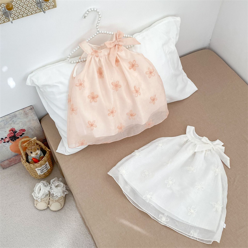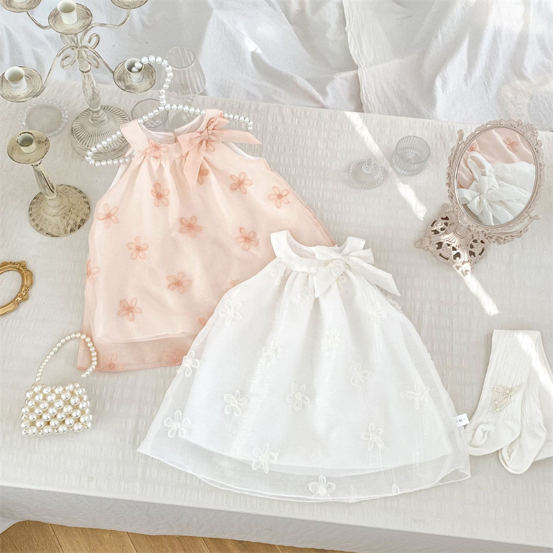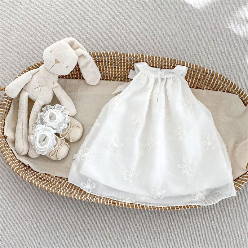 可愛い刺繍花柄が女の子らしさを演出し、ピンクと白の2色からお選びいただけます。