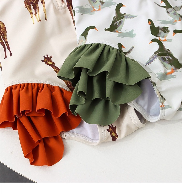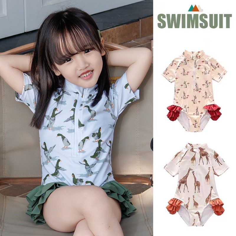 国内倉庫から発送される高品質なキッズ水着です。 可愛い動物柄とフリルデザインがロングワンピースのような上品な印象を演出します。 着心地が良く水泳や海水浴に最適で、お子様の水遊びシーンで大活躍します。 ぜひこの機会にお試しください。