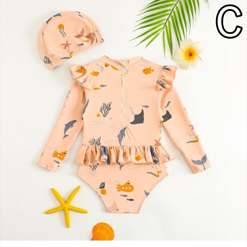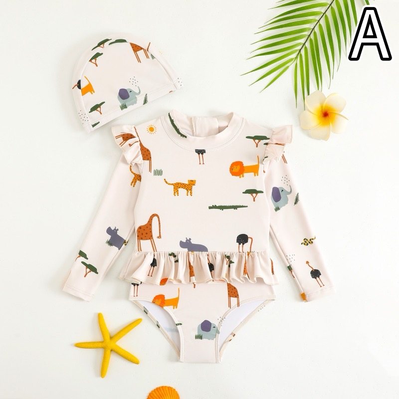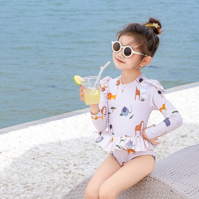 長袖のロングワンピースタイプで紫外線対策もばっちり。