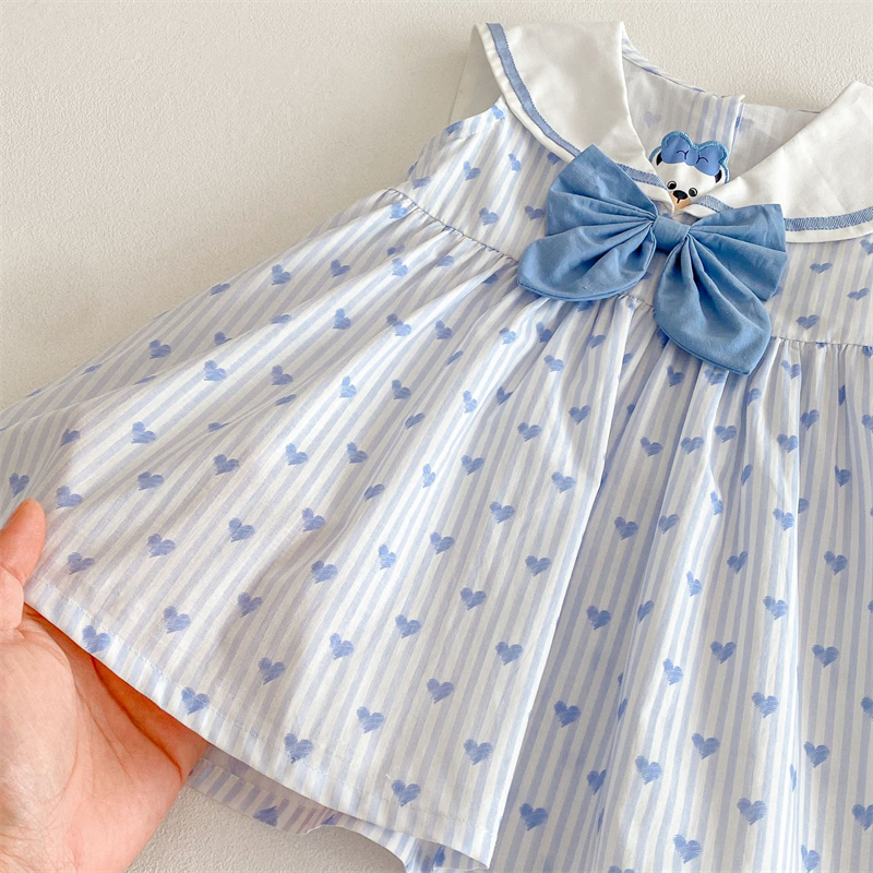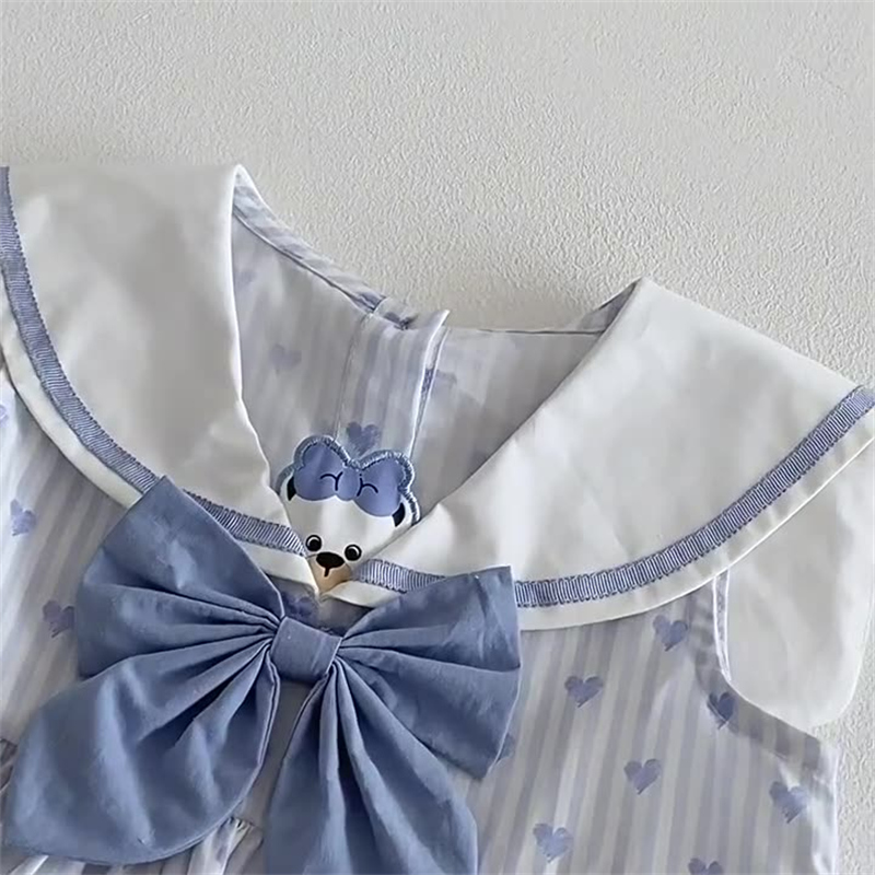 胸元の大きなリボンとドット柄がとても上品で愛らしいデザイン。