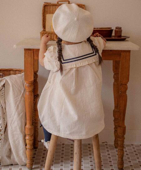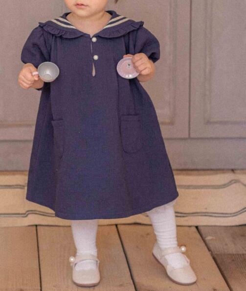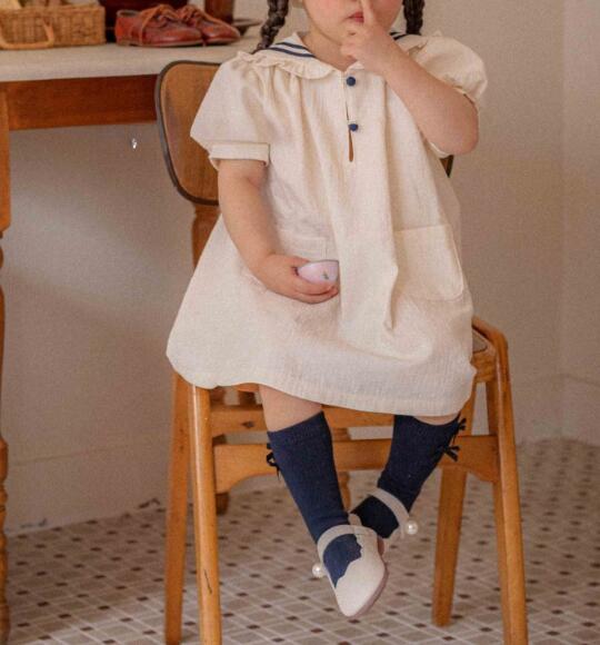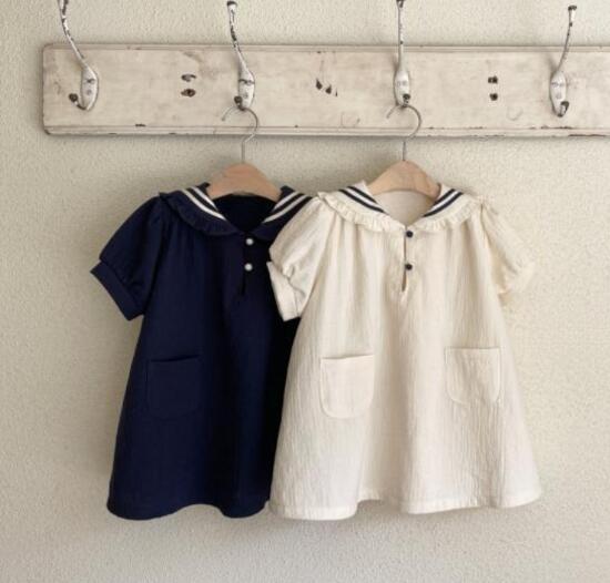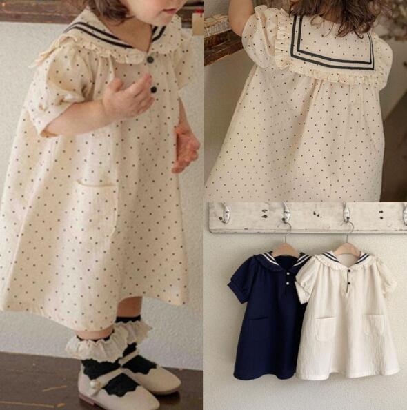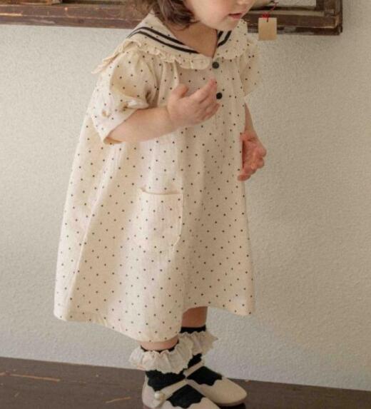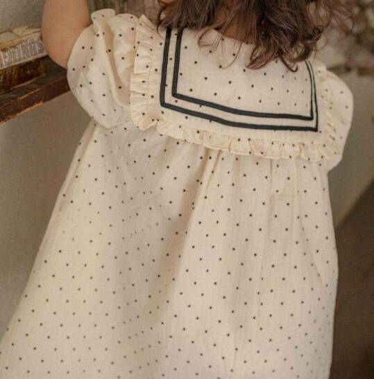 可愛いセーラー襟とドット柄が特徴的なキッズ用ロングワンピースです。