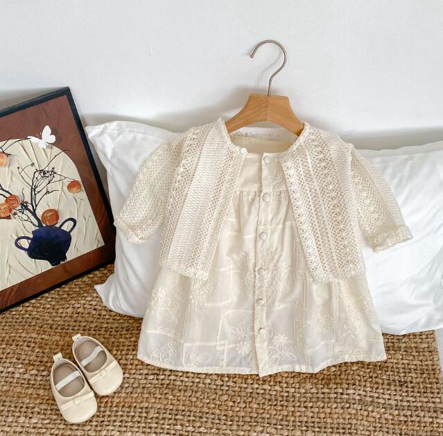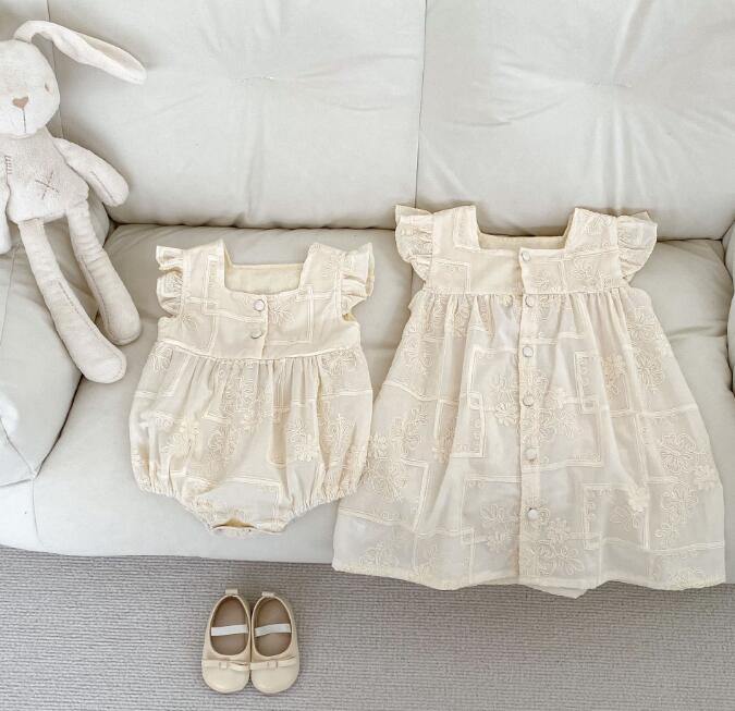 上品な刺繍が美しいキッズ向け韓国風デザインのお揃いセット。