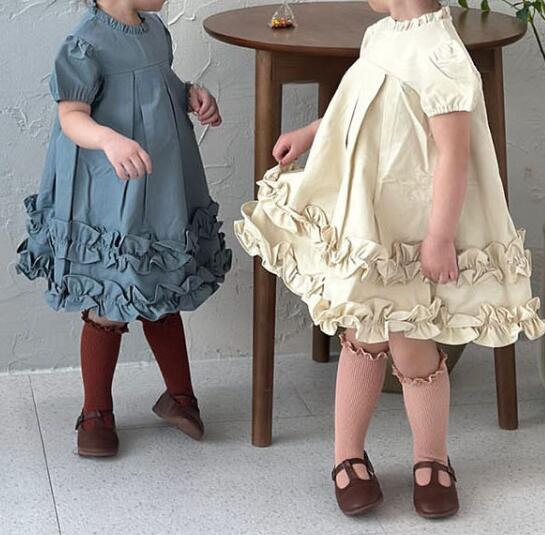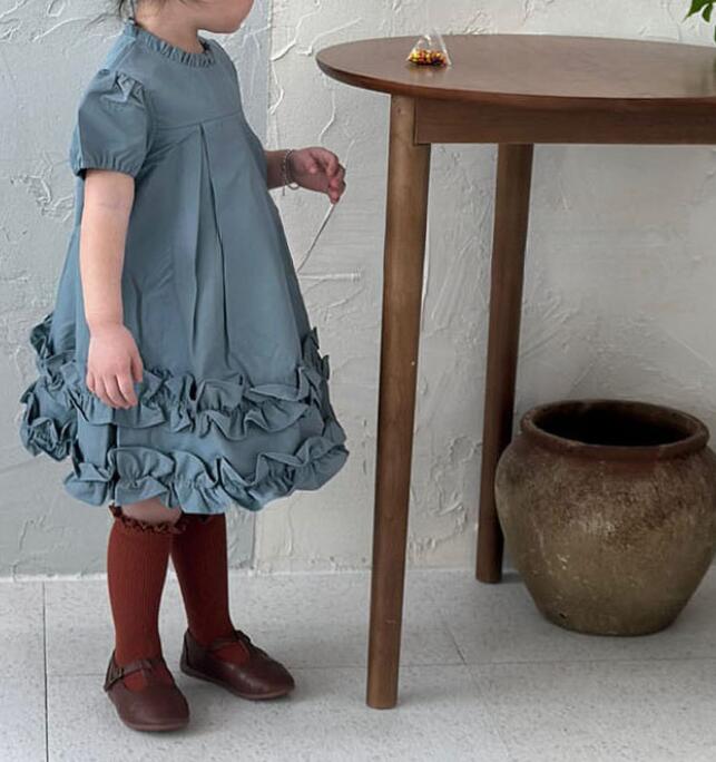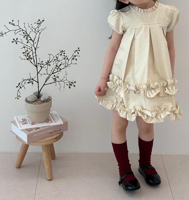ふんわり可愛いフリルが印象的なキッズ用ロングワンピースです。