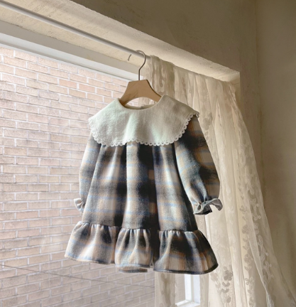 上品な丸襟が特徴的なキッズ用ロングワンピースです。