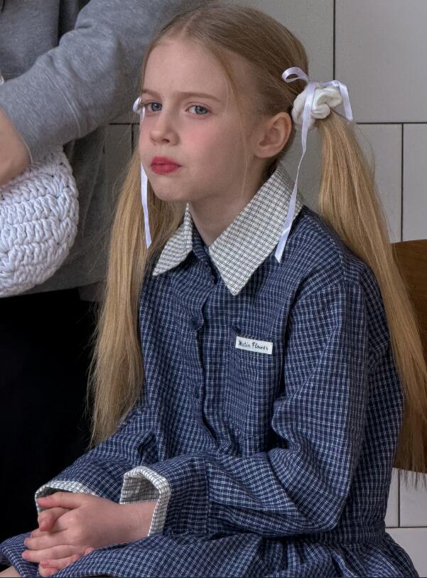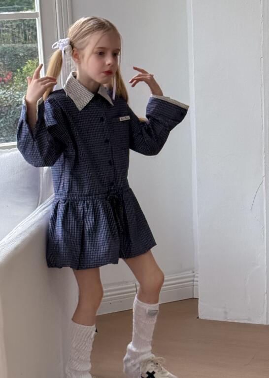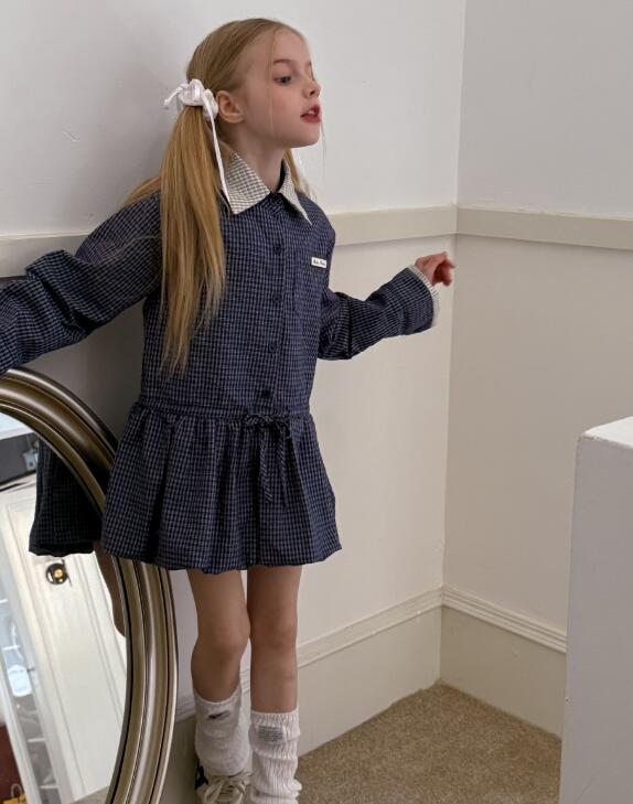 上品な格子柄が特徴的なキッズ用ロングワンピースです。