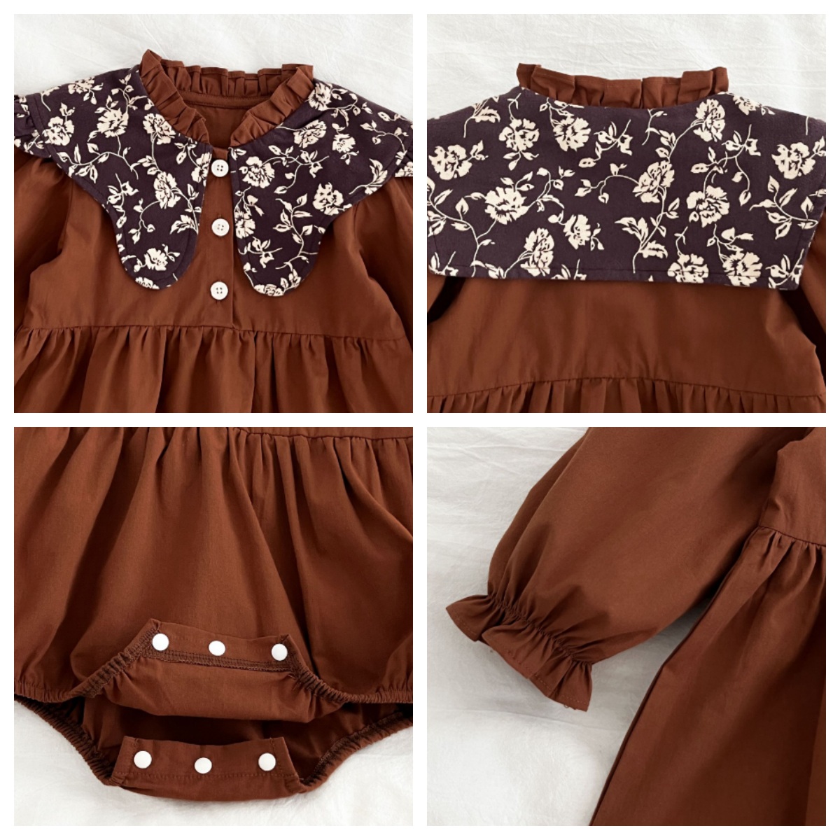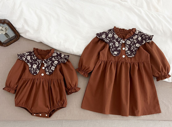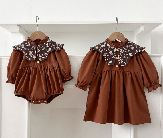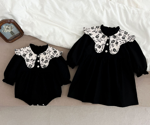 可愛い花柄の大きな襟が印象的なキッズ姉妹服セットです。