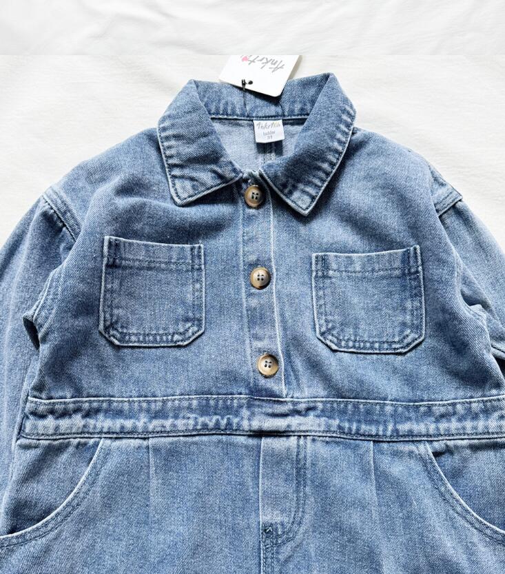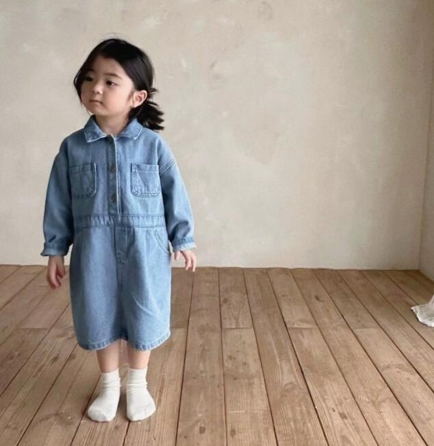 2025年春夏の新作キッズ用デニムロングワンピースです。