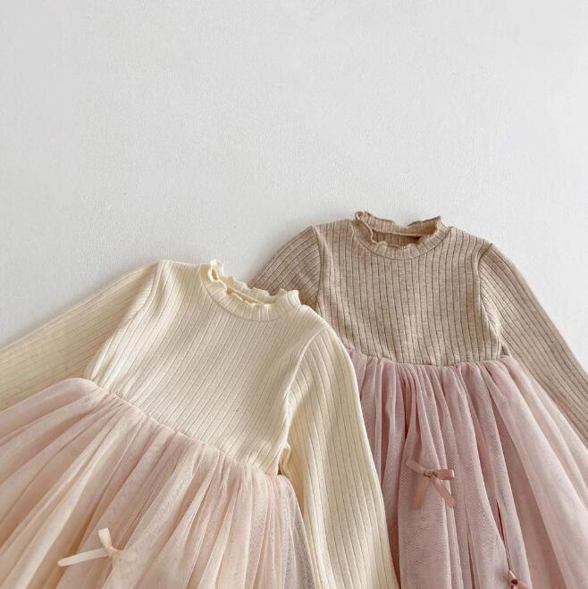 韓国風のおしゃれなデザインで、リボンの装飾がアクセントになった女の子らしい一着です。