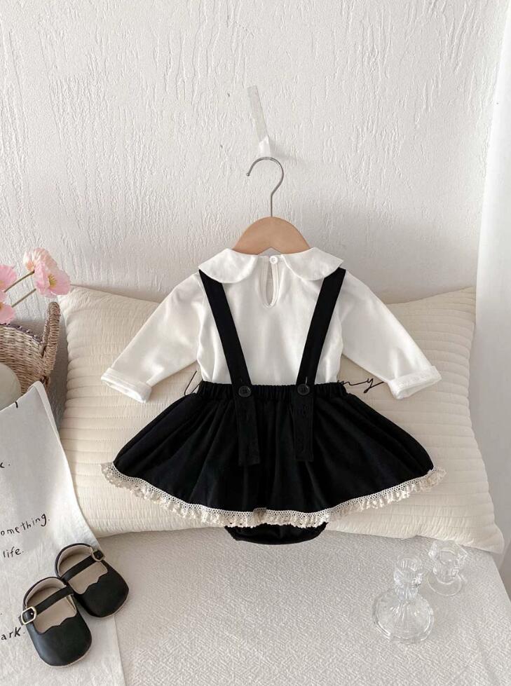白いブラウスとジャンパースカートの重ね着風デザインで、
