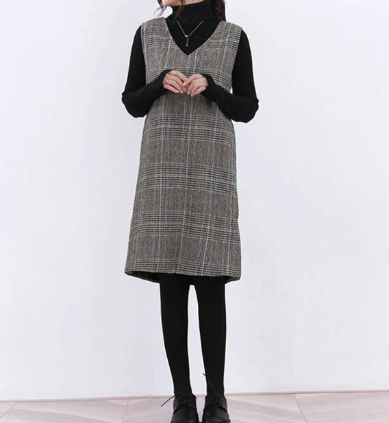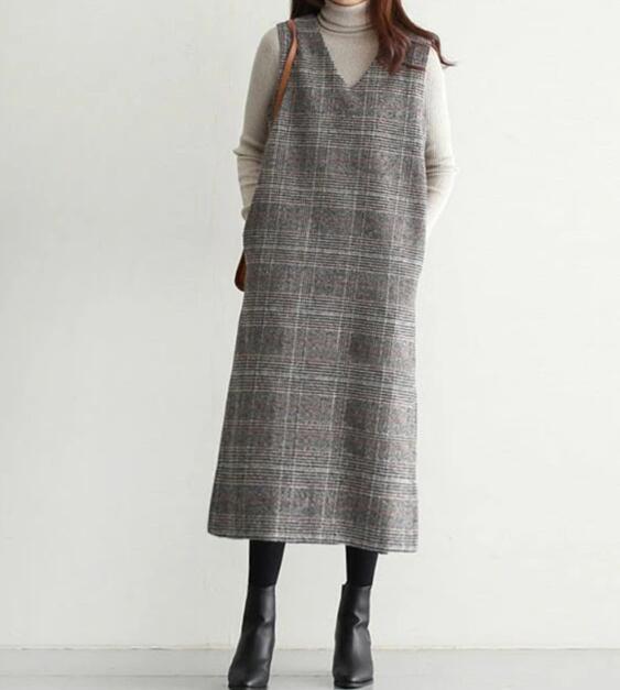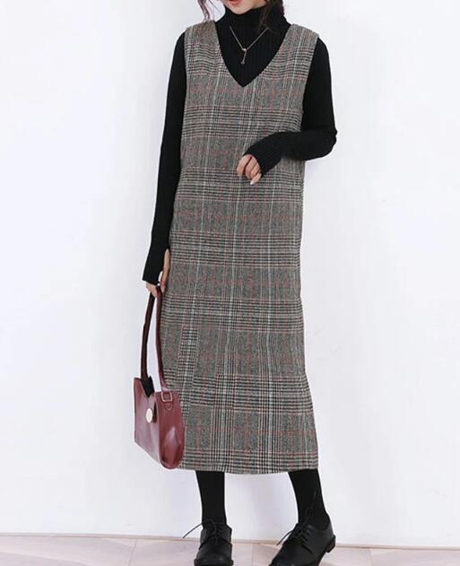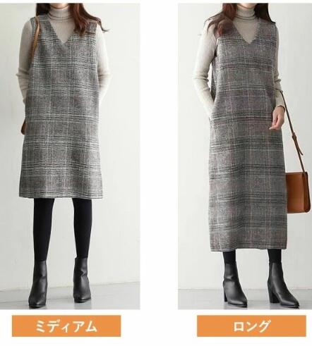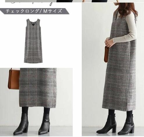 大人の上品な着こなしを叶えるチェック柄のノースリーブロングワンピース。