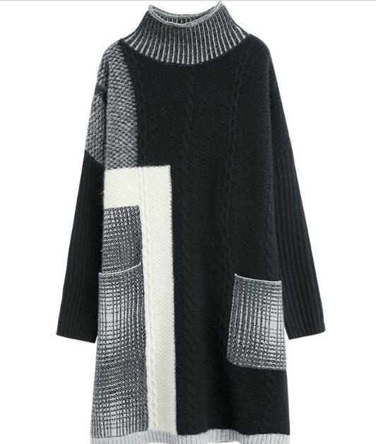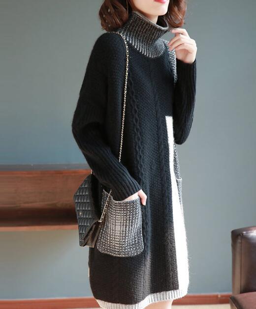 上品なタートルネックが魅力的なミニ丈ニットワンピース。